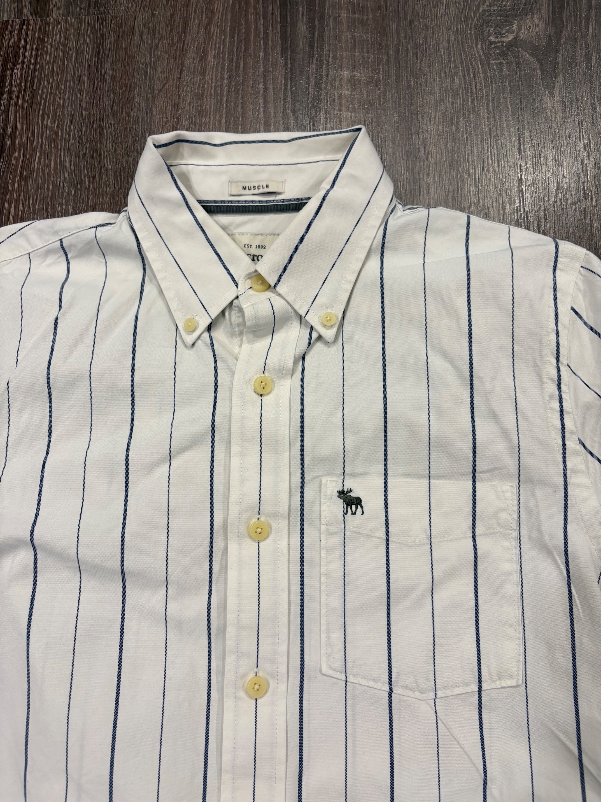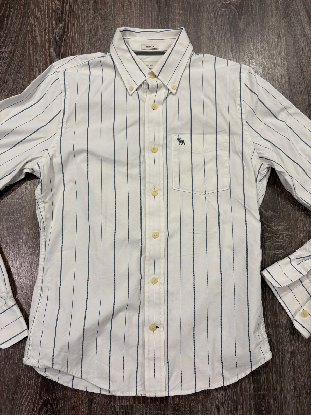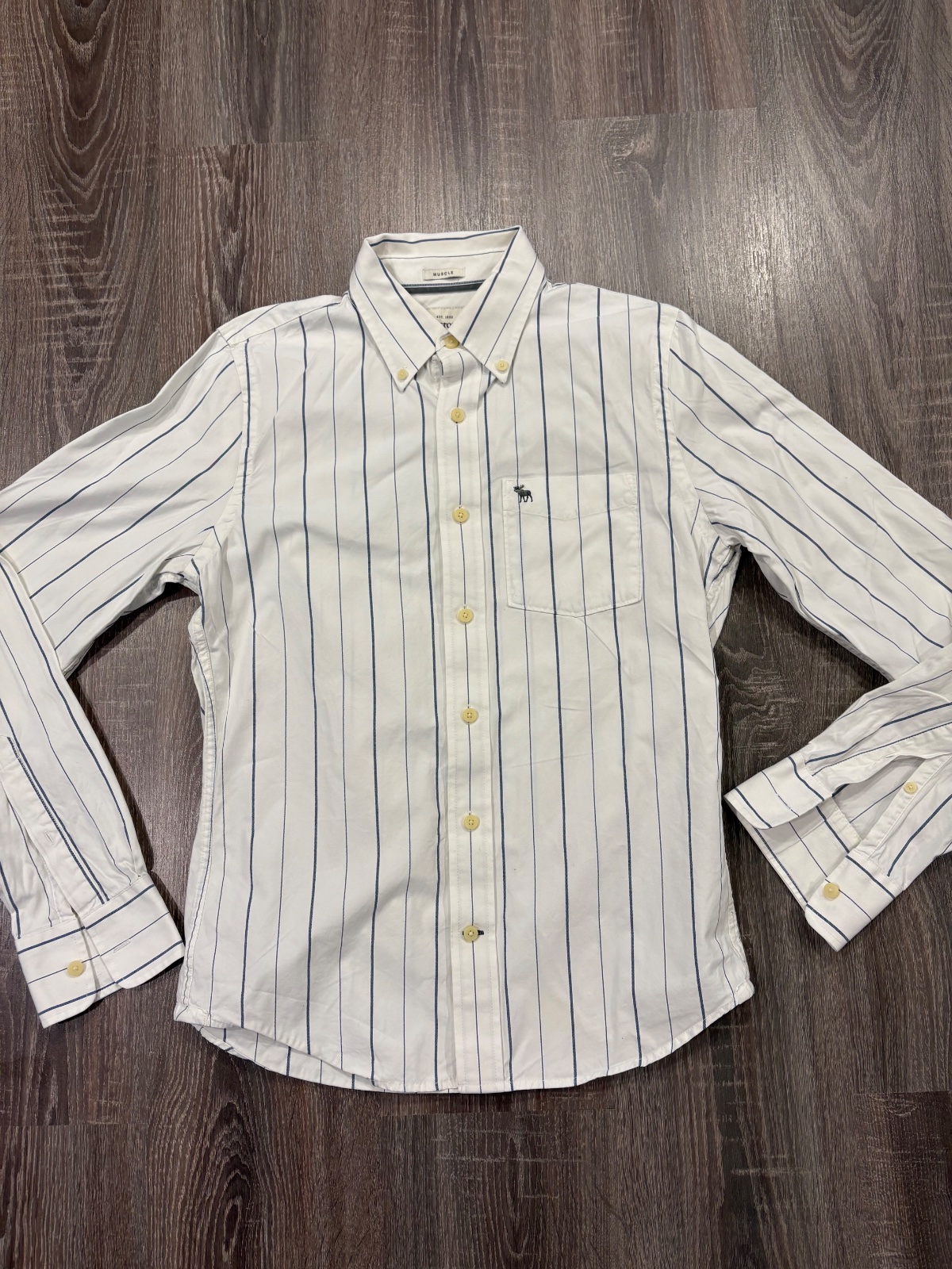 96.Abercrombie&Fitch panska kosela vo velkosti M,dlzka prednej casti je 69cm a zadnej je 72cm,dlzka rukava od krku je 87cm a sirka v podpazusi je 53x2cm.Material 100% bavlna