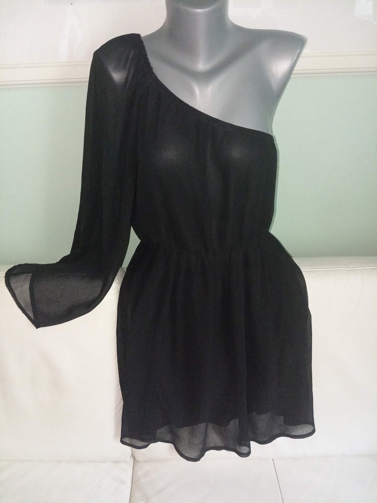 V top stave, jedno rameno odhalené, okolo výstrihu je gumička, drží dobre.