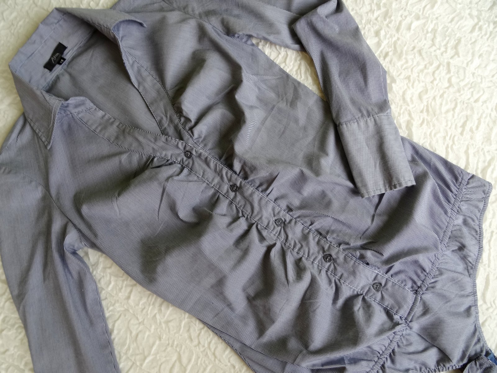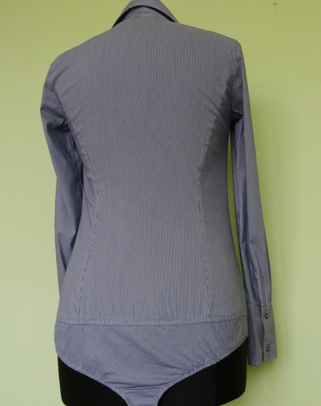 Jemne prúžkované, elastické košeľové body značky Ann Christine, veľ. XS, rozmery: dlžka 59cm, s klínom 75cm, pod pazuchami 2x42cm, rukáv 59/47cm.