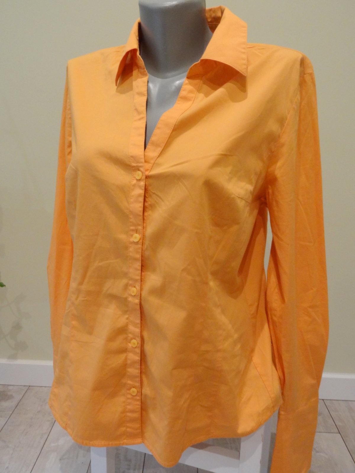 Dámska košeľa v oranžovej farbe ... dobrý stav ... značka: More&more .... veľ. 42, no hodí sa sa skôr na 38/40 ... dlžka 67 cm, šírka pod pazuchami 52 cm, šírka pás 46 cm