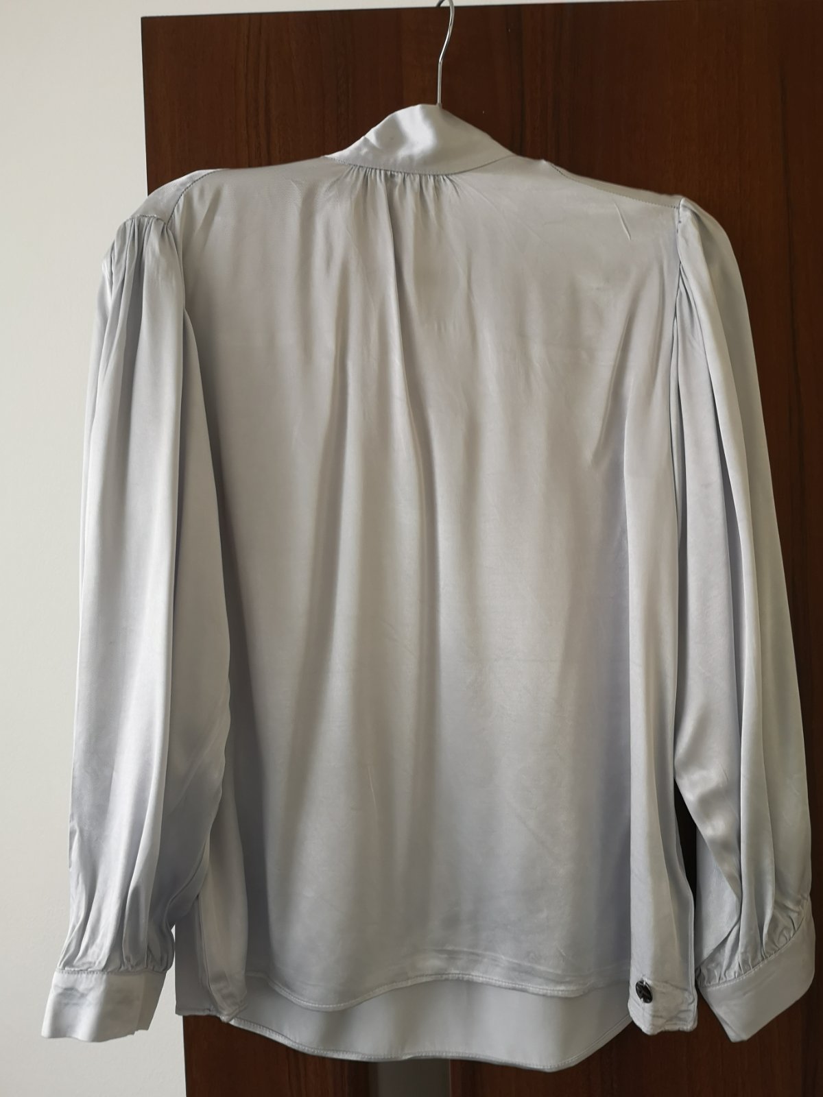 Nadherna satenova bluzka, dovoz z Anglicka. Ma stojacik, takze vyzera ako cinska. Nosila som ju velmi rada, len mi uz vadi to, ze je to do pasu. Dlzka od ramena 48 cm.