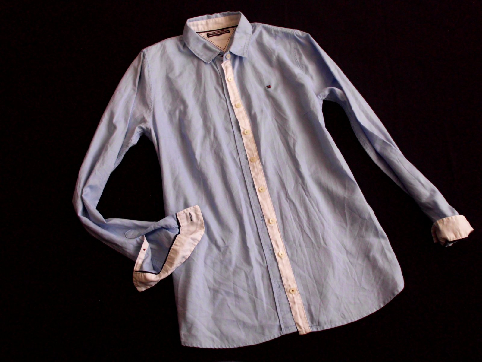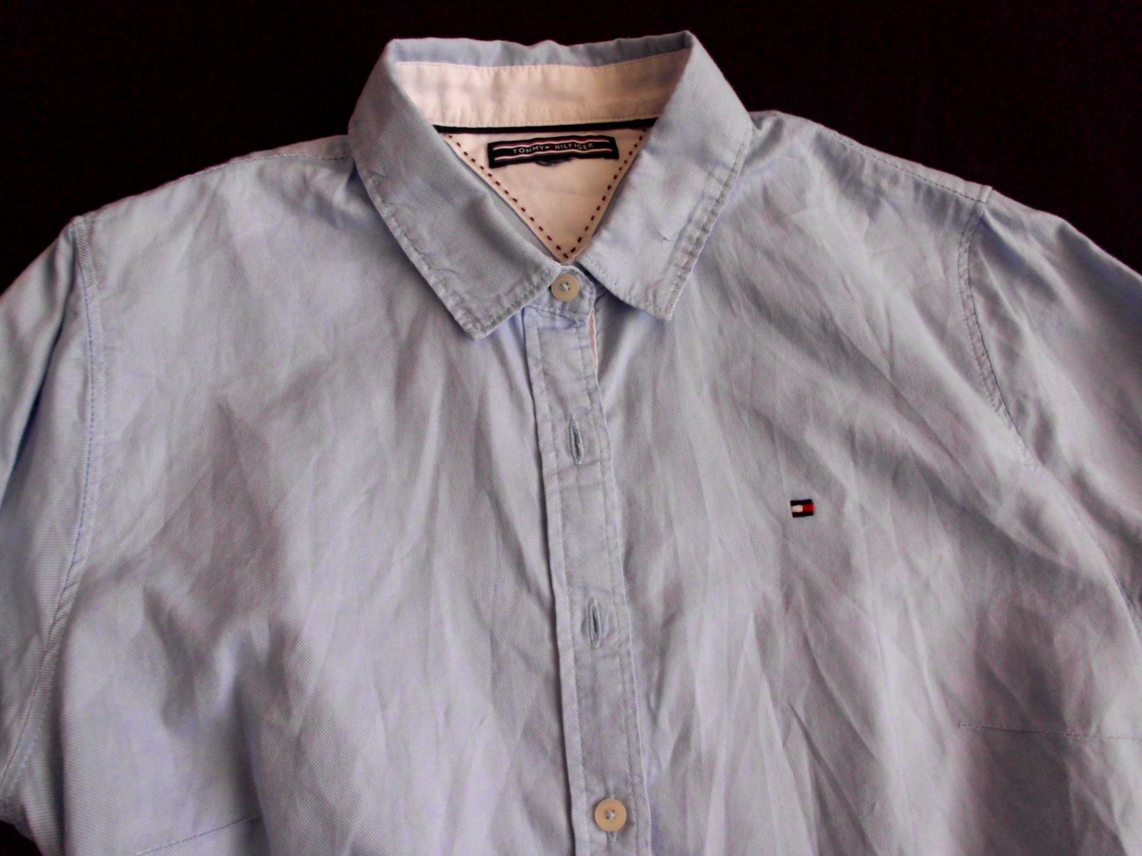 Predám dámsku slim košeľu Tommy Hilfiger vel. S, šírka 45 cm, dĺžka 68 cm, rukáv 62 cm od pleca, príjemný materiál , farba bledomodrá + biela , 3x oblečená ,top stav..