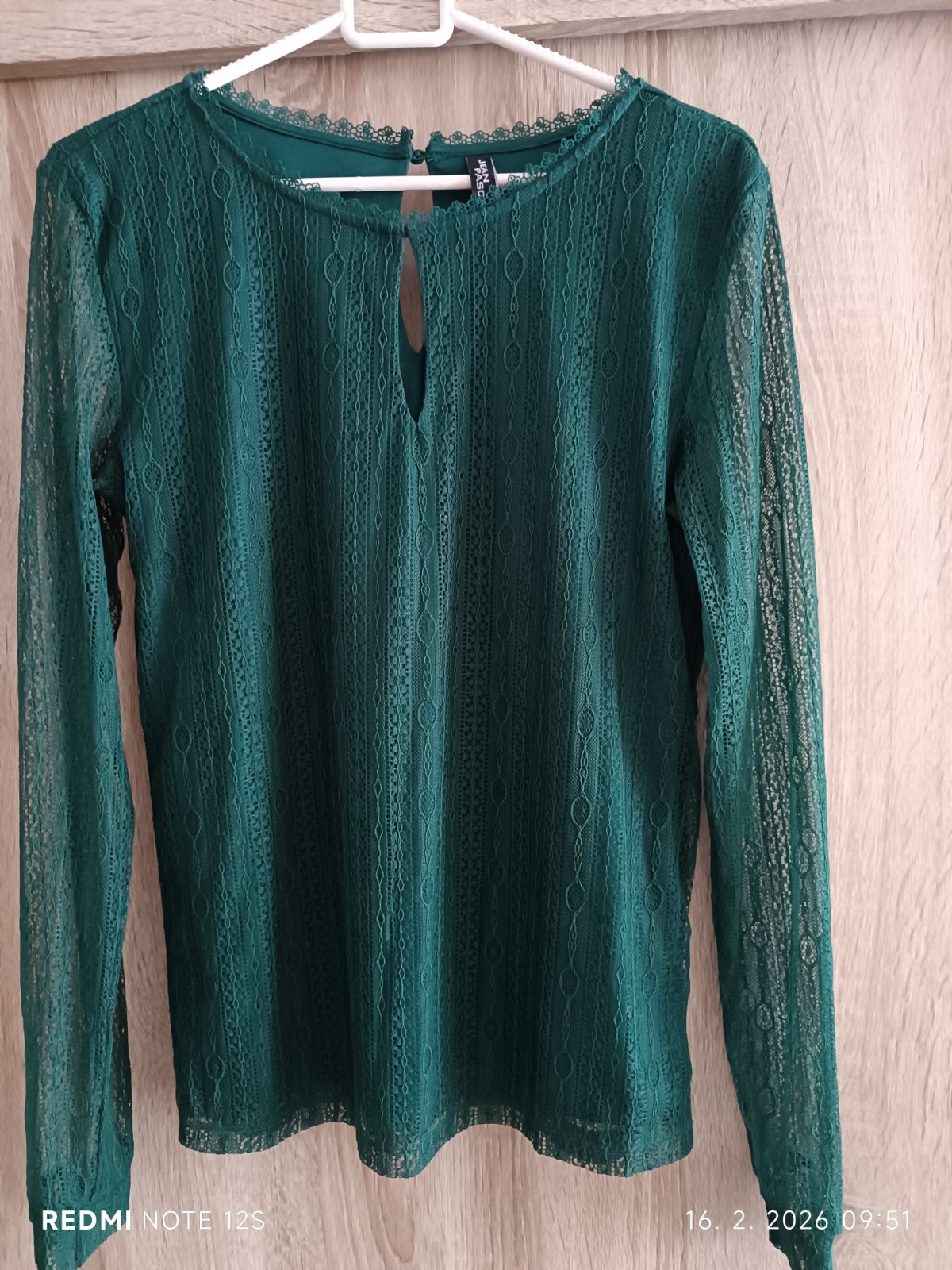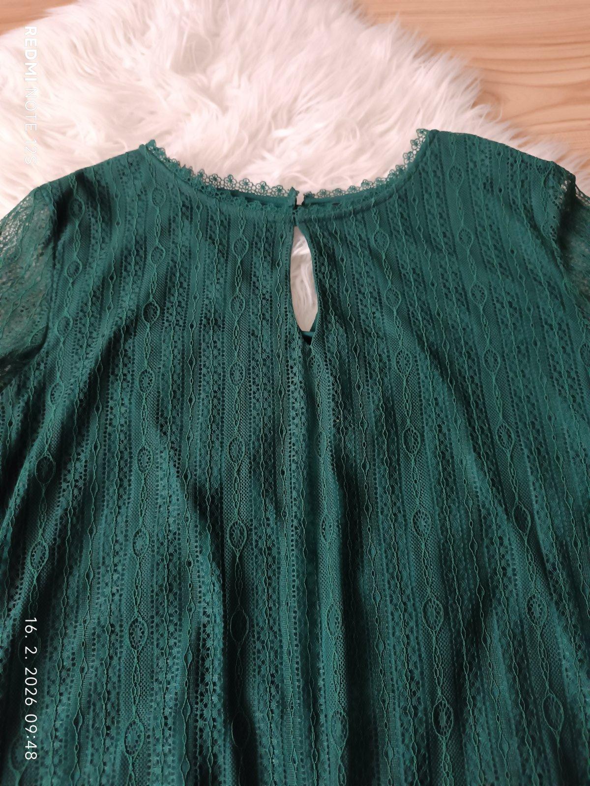 Smaragdová farba, vo výstrihu slzička, zapína sa na gombík na krku v zadu, elastická, dvojvrstvová,