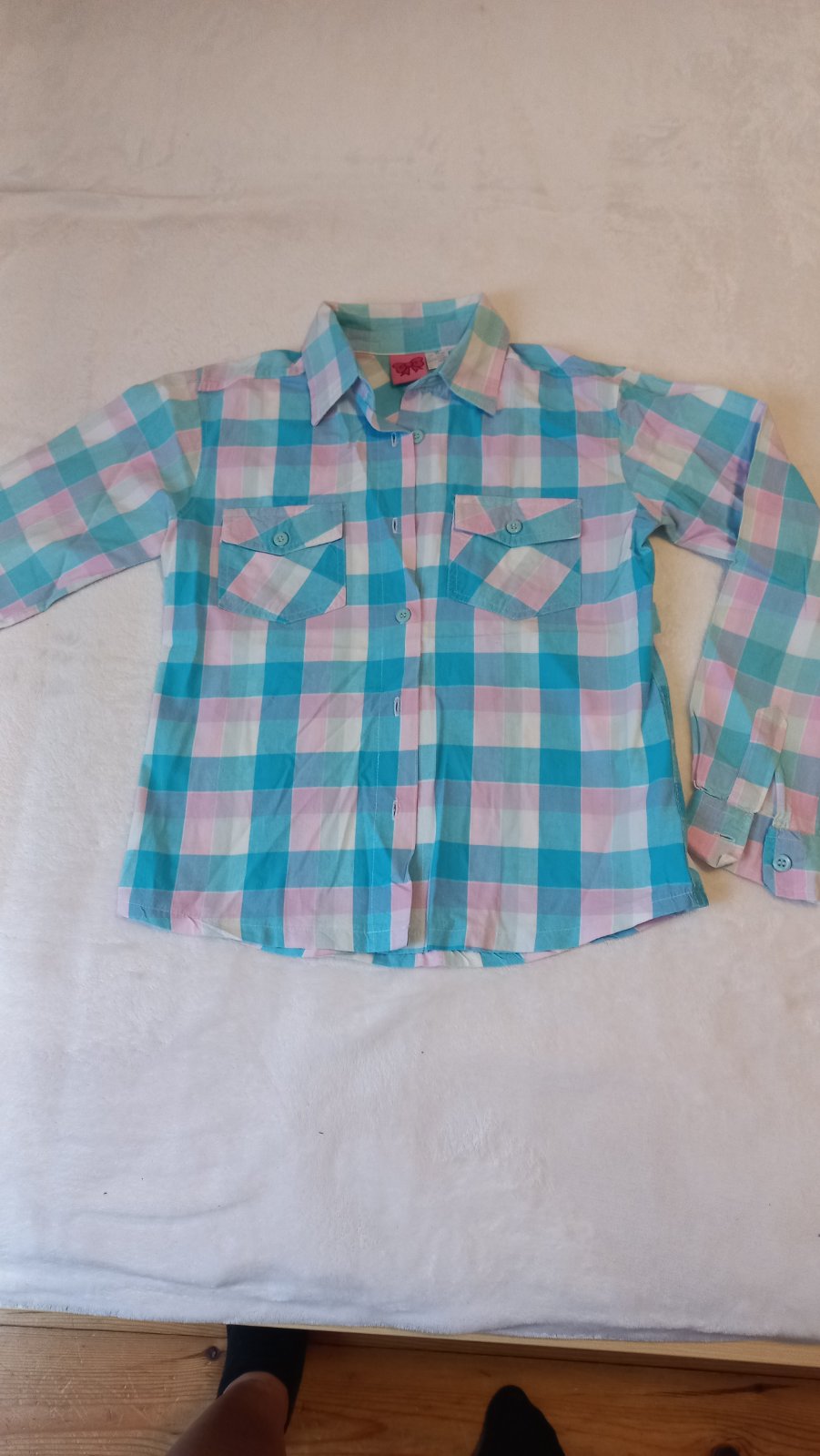 Predám dievčenskú károvanú košeľu tyrkysová ružovo bielú v nosením stave. Farby svetlejšie ako na foto. Poštovné podľa cenníka slov. pošty