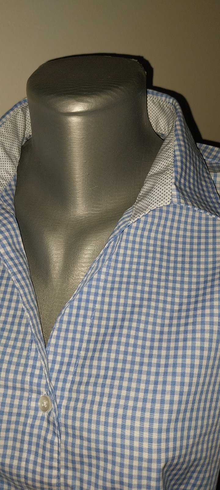 ...pekná bielomodrá kockovaná blúzka ako nová...dl.chrbta 67cm, šírka pod paz. 52x2 cm, dl.rukáv od krku 80 cm...cena 6€+pošt...