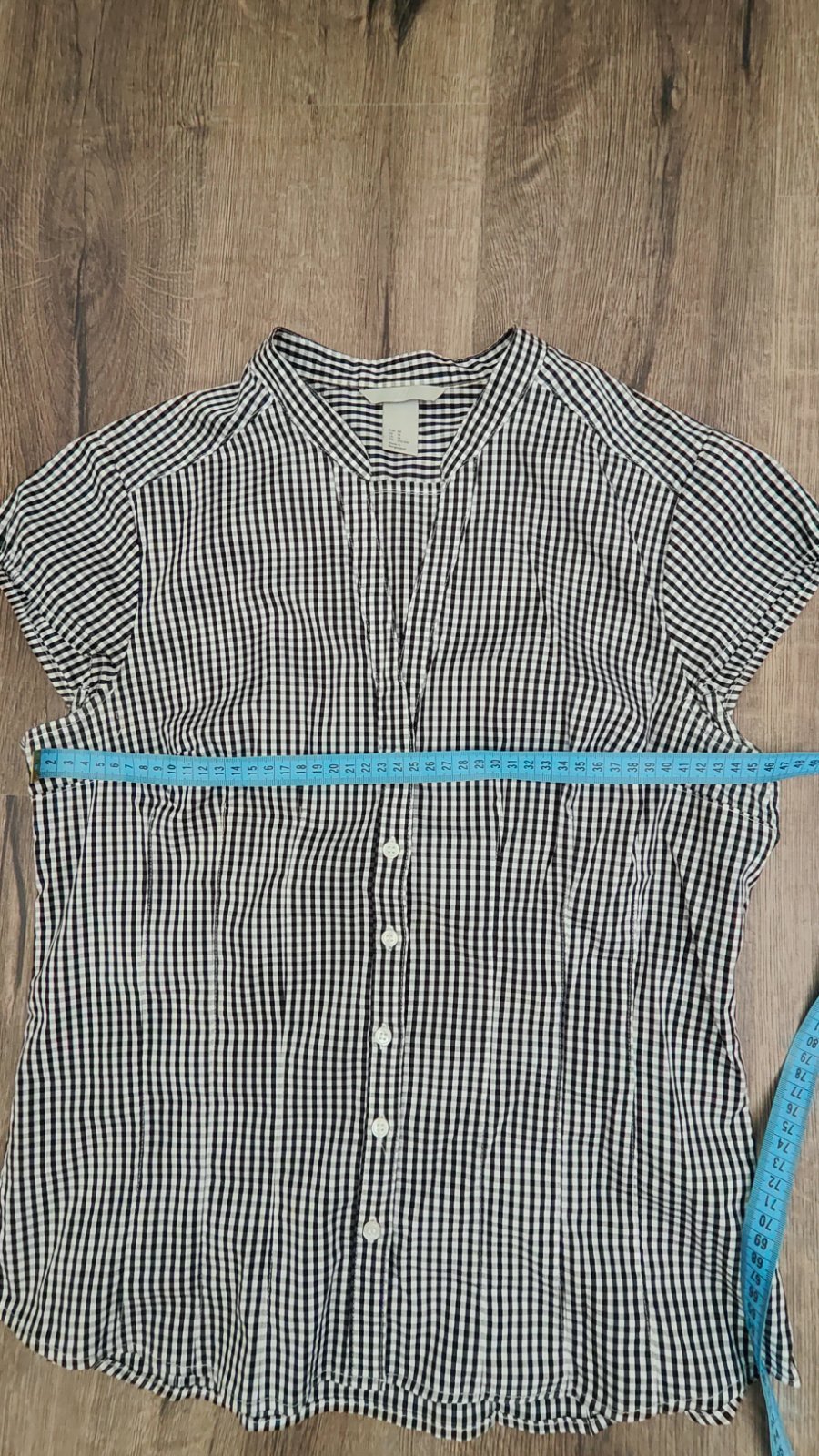 Kvalitná letná blúzka so zapínaním na gombíky, materiál 100% polyester, chladivá, super stav, ako nová. šírka v podpazuší 59x2 cm, pás 62x2 cm, boky 63x2 cm, dl. 83 cm dd 9