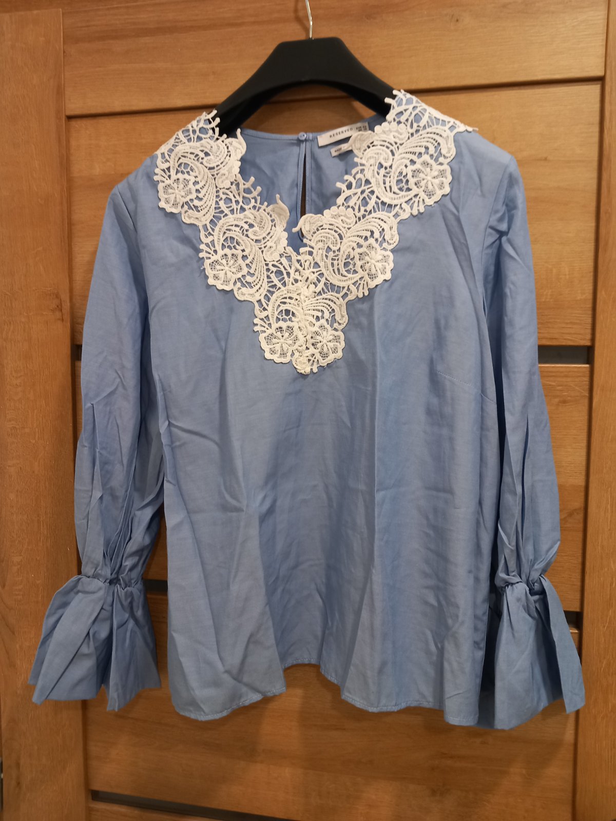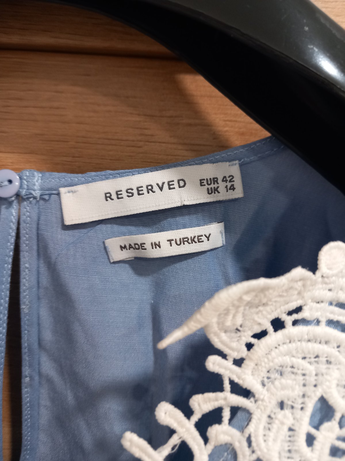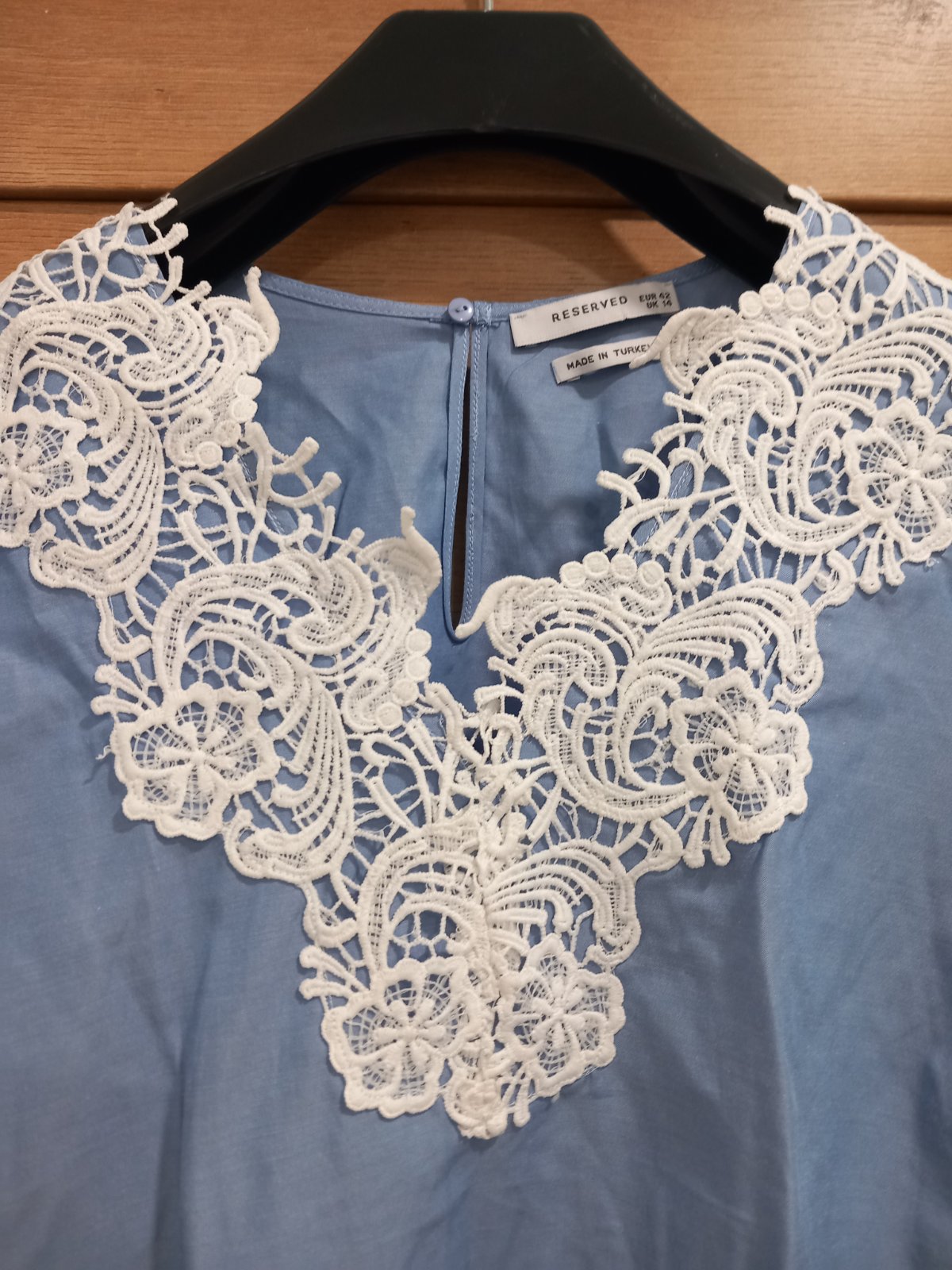 Blúzka Reserved velk. 42. Dlžka 66 cm, šírka 2 x 61 cm. Je podšitá, viď fotky. Nosí sa taká voľná. Je super neoľutujete. Pôvodná cena 18 e.