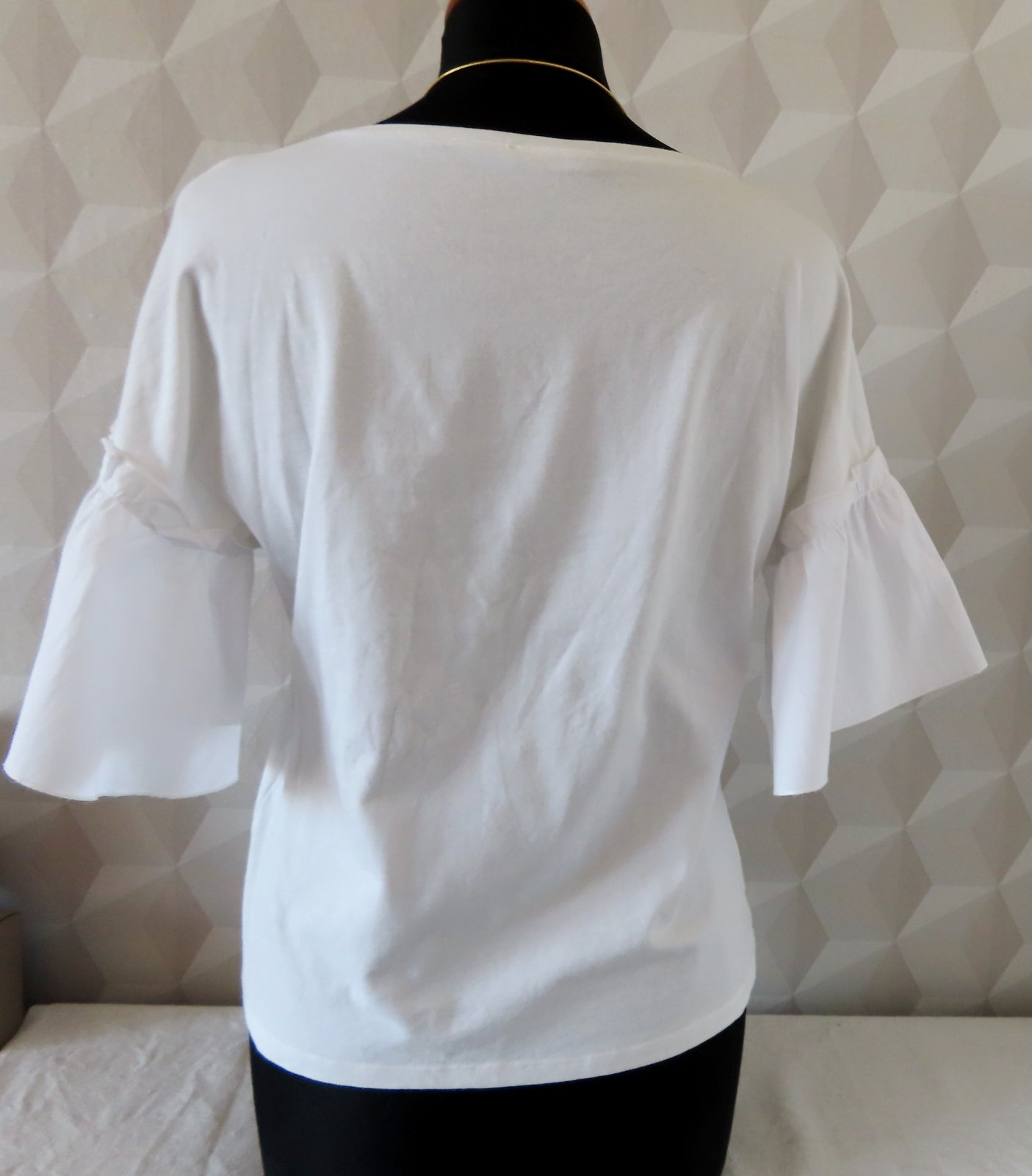 Biela crop blúzka, top zn. Orsay, veľ. S - rozmery: dlžka 52cm, pod pazuchami 2x45cm rukáv od krku 37cm.