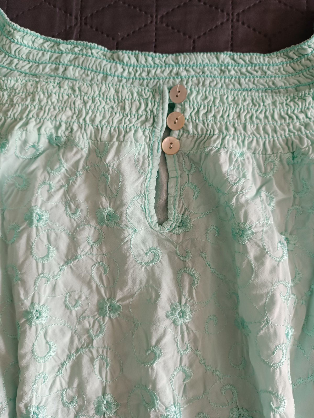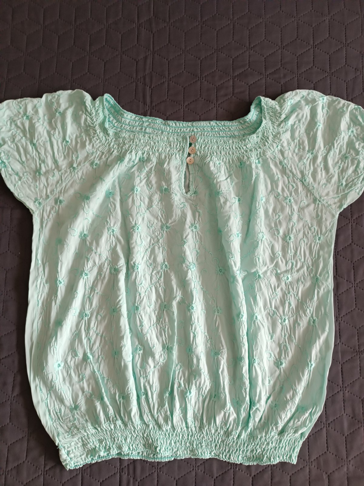 Pekná romantická blúzka, veľkosť odhadom L. Vpredu so vzorom. Pazuchy do 60 cm. Dĺžka 60 cm. Dole gumička. Cena 2 eurá plus poštovné.