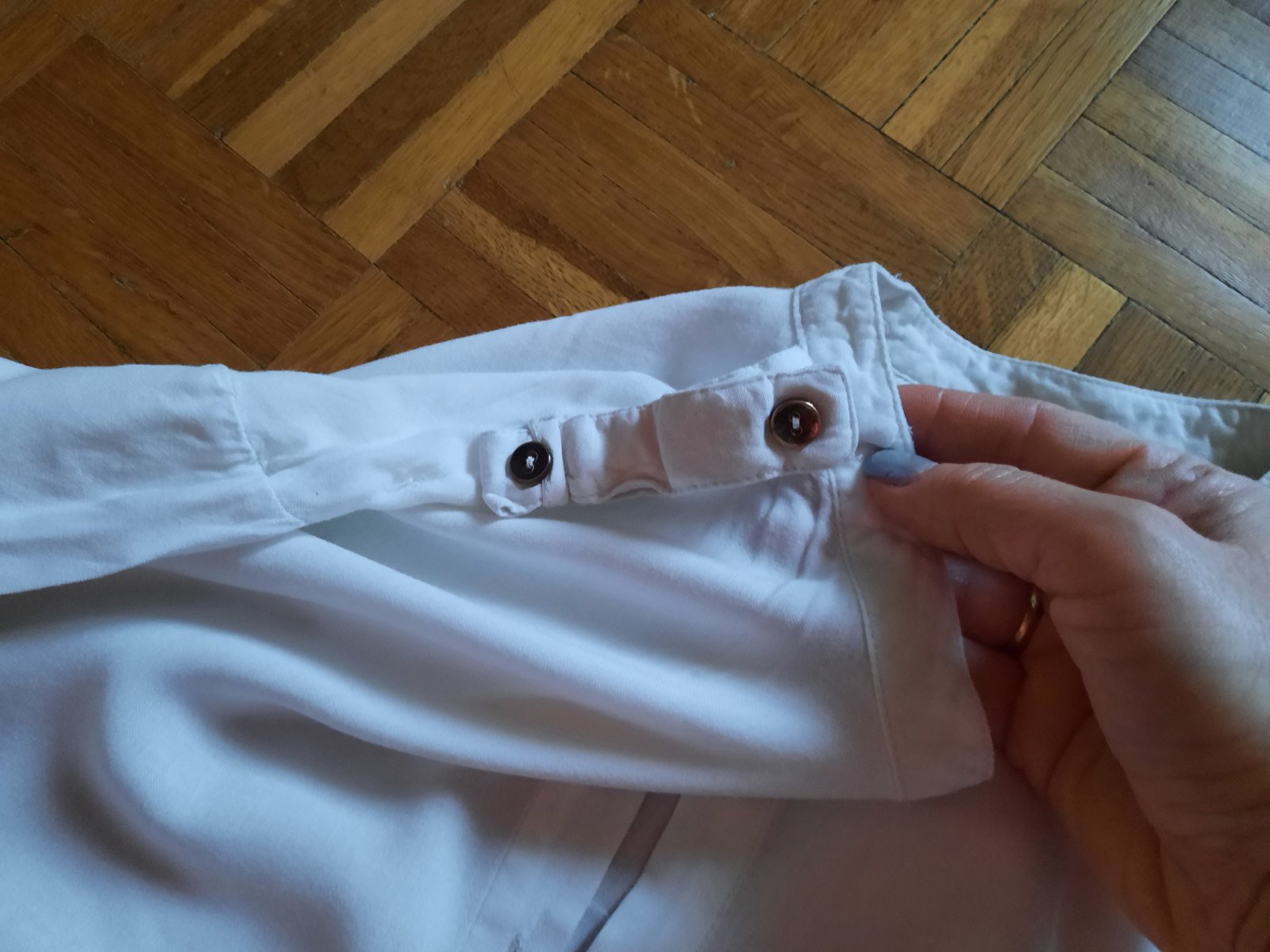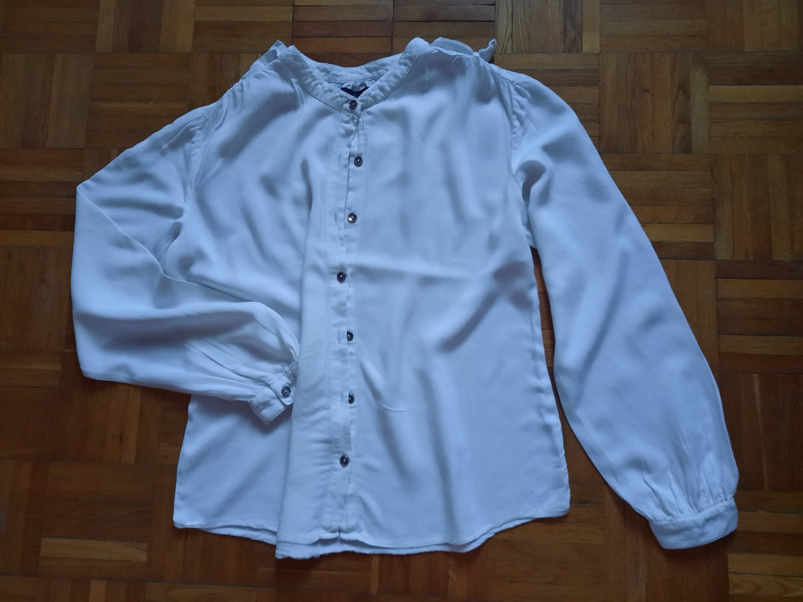 Veľmi pekná blúzka na gombíky. Je voľného strihu, preto sedí aj na M podľa mňa.