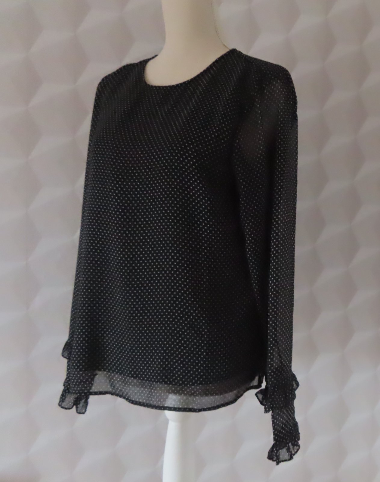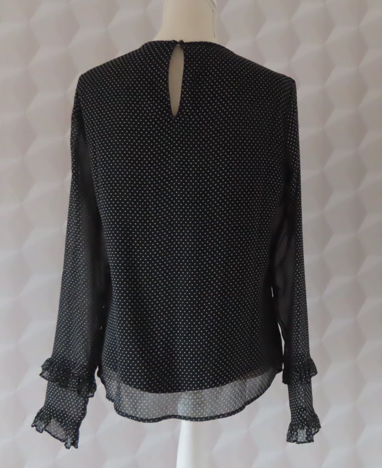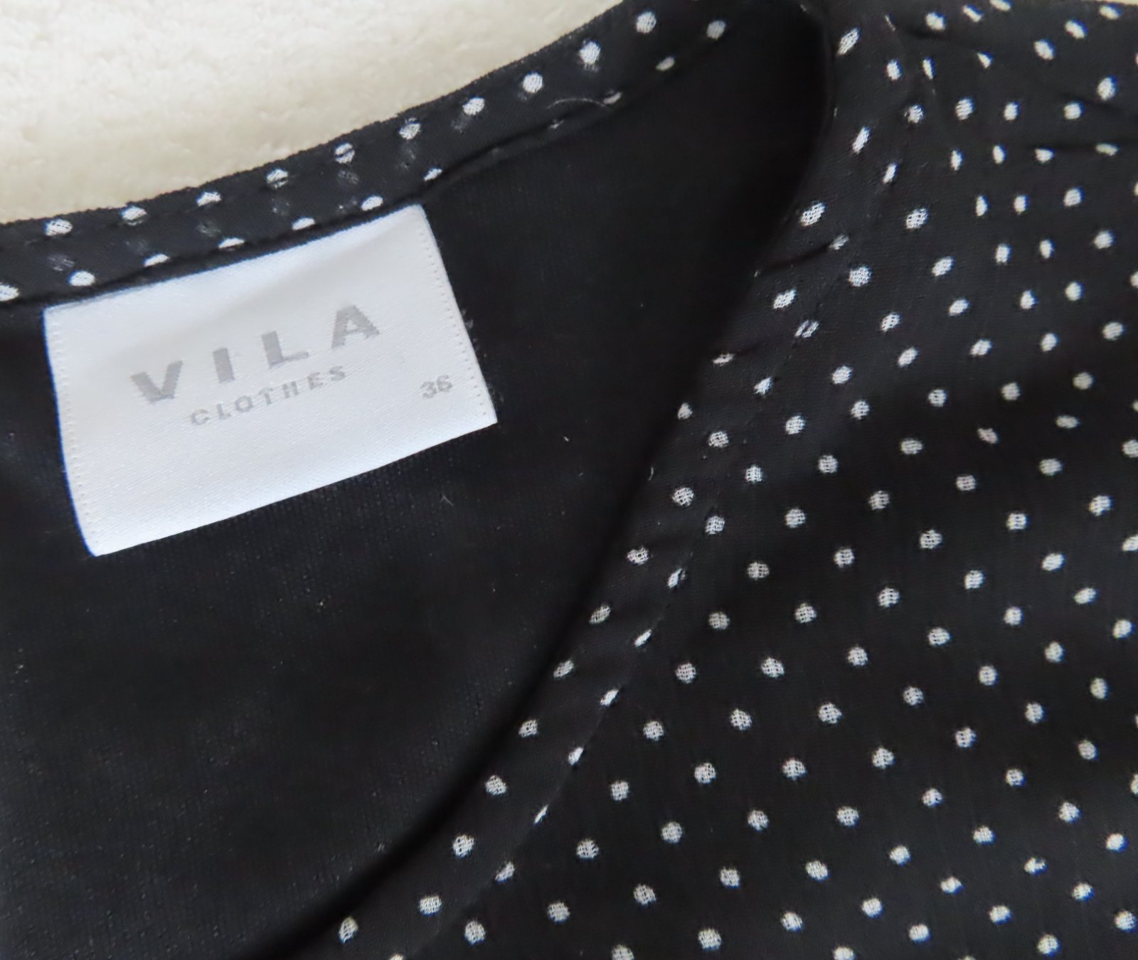 Vrchný diel je šifónový, čierny s bielymi bodkami.