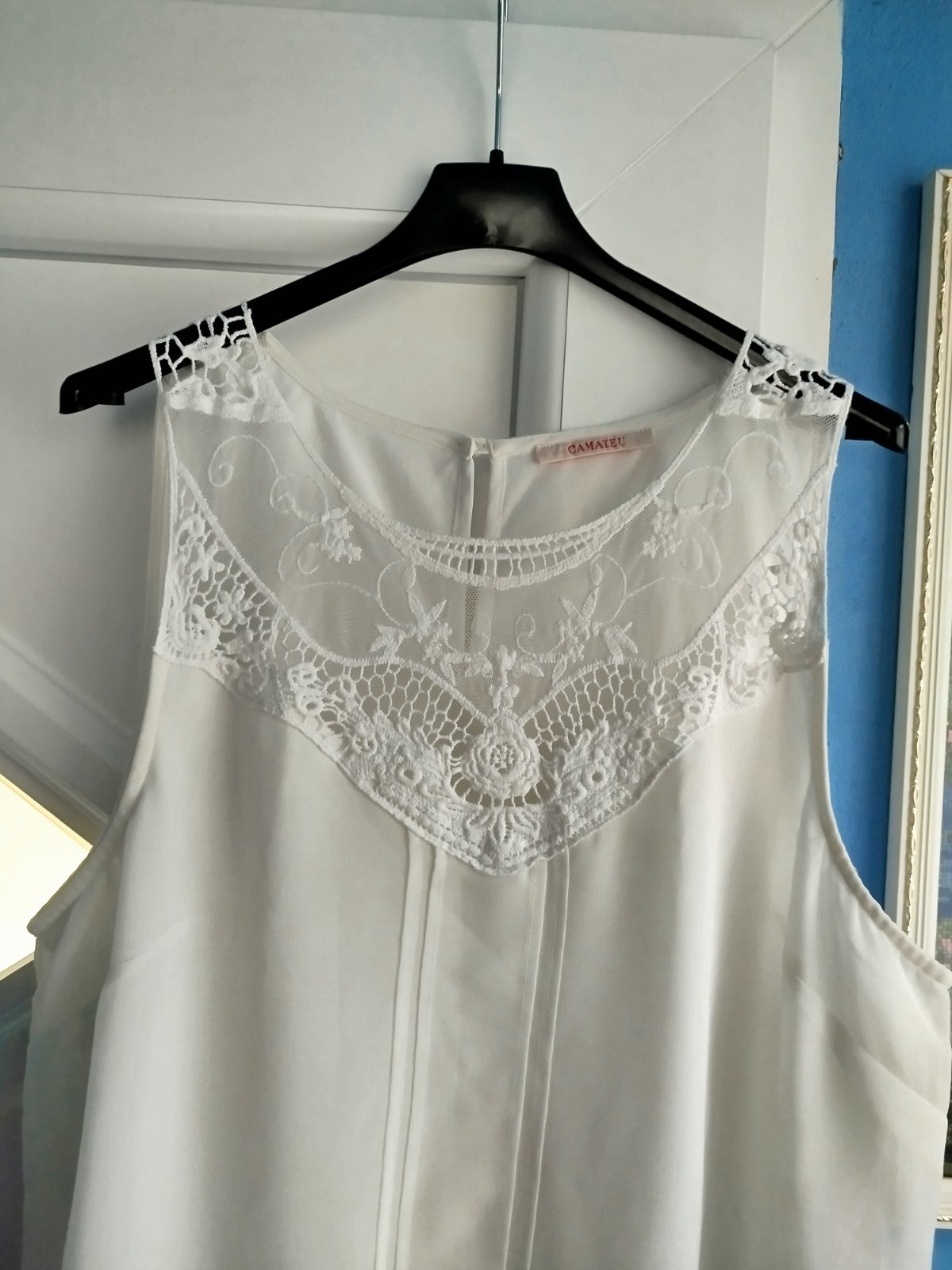 - veľmi pekný stav, bez poskodenia, čipkovaná časť snehovobiela, ostatné prirodná biela, pekna, veľkosť odhadom, rozmery pofotene