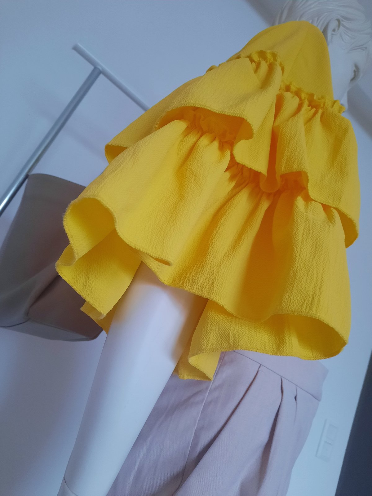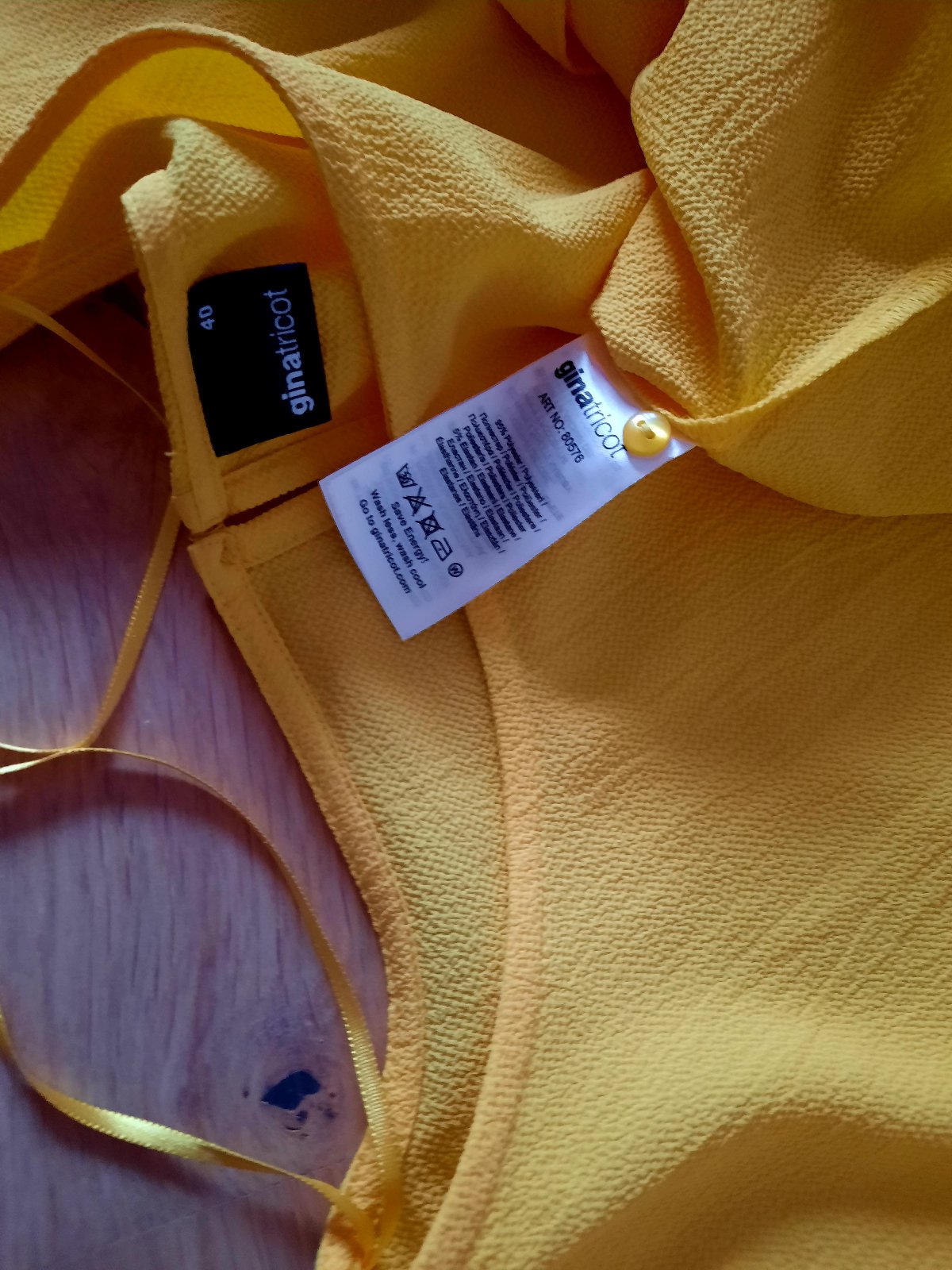 zn. "GINATRICOT" krasna žiarivá žltá bluzky s objemnými volánmi na rukávoch...vel L