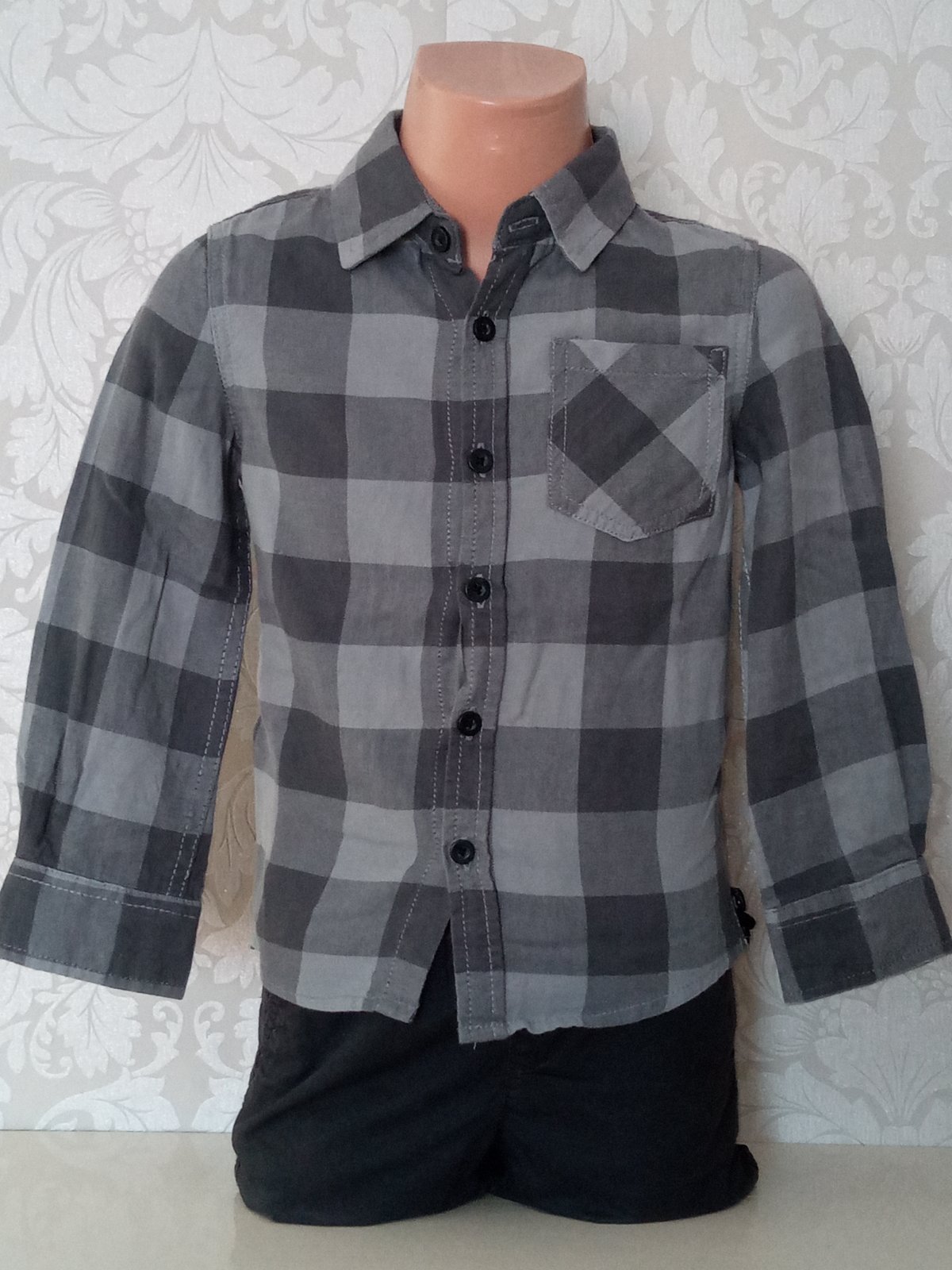 Chlapčenská károvaná košeľa s dlhým rukávom. Zapínanie na gombíky. Nie je elastická.. Jedno vrecko na hrudi. Materiál 100%bavlna.