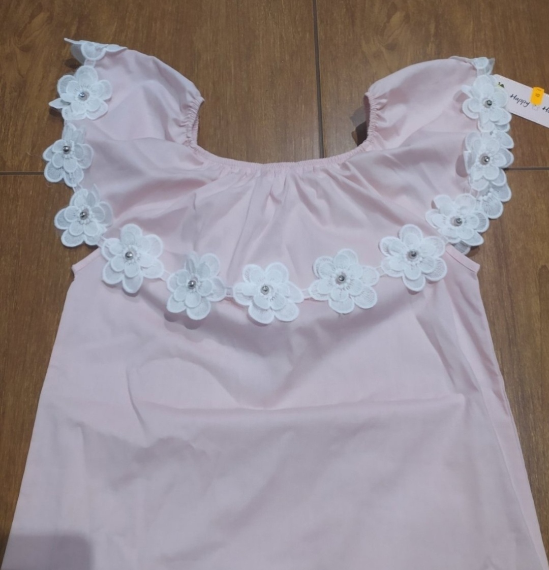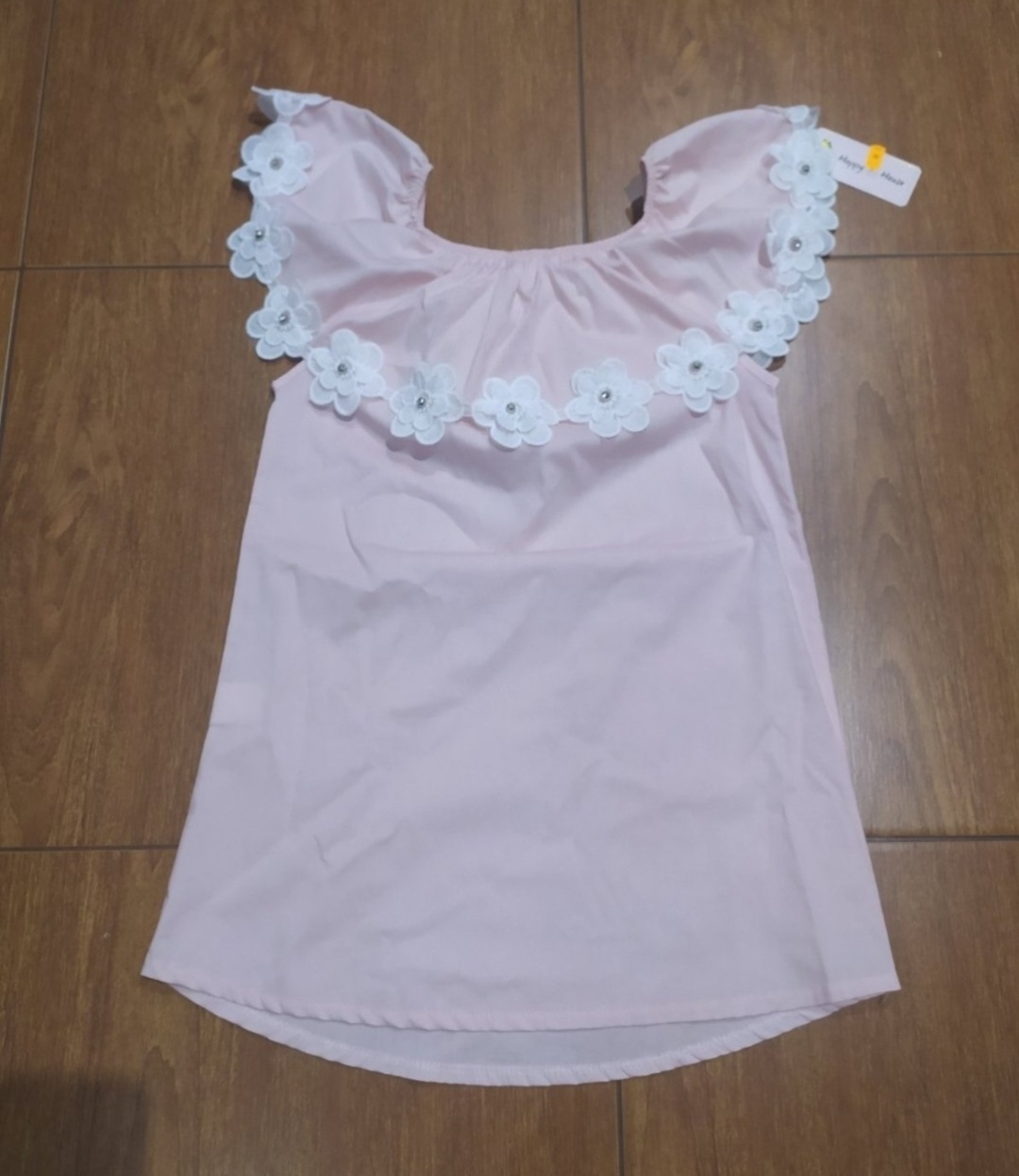 Krásna blúzka,vrch stiahnutý do gumy,zdobený volanom s 3D kvetmi z krajky