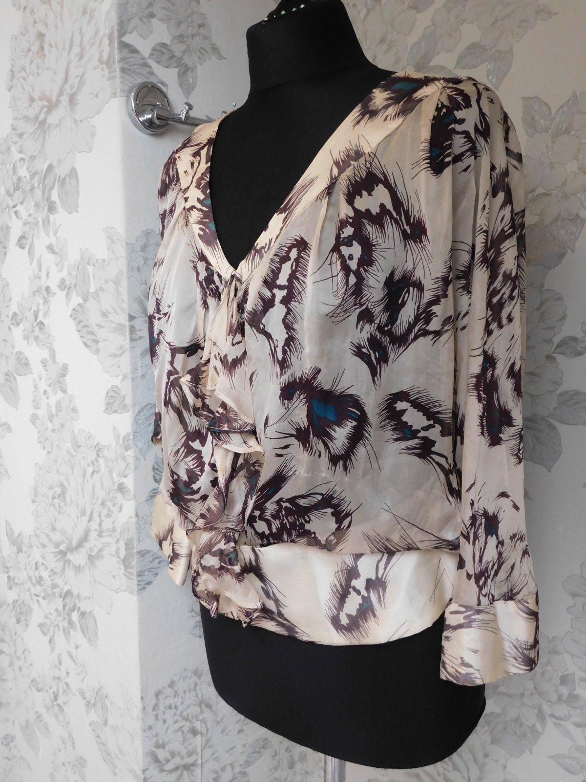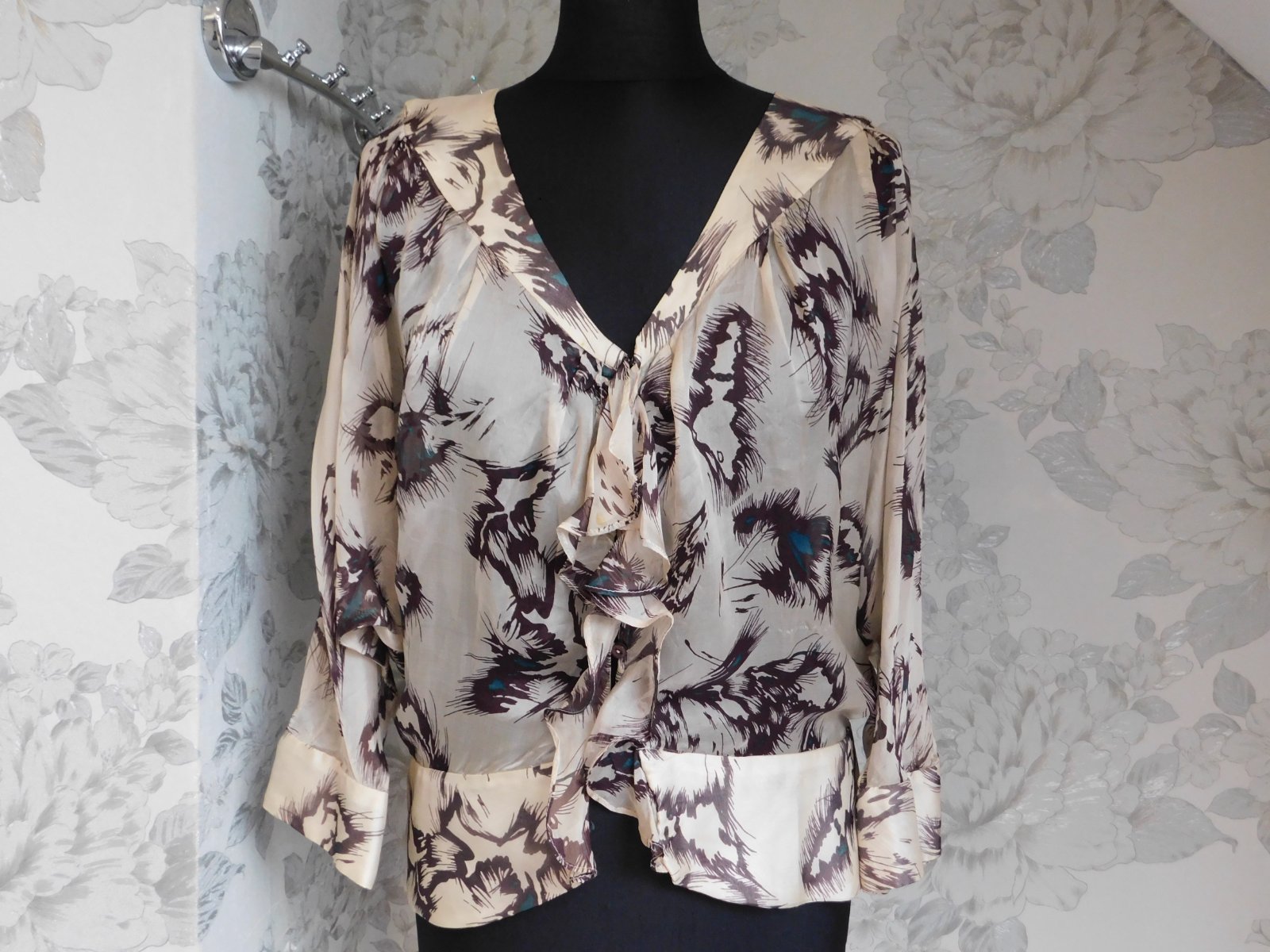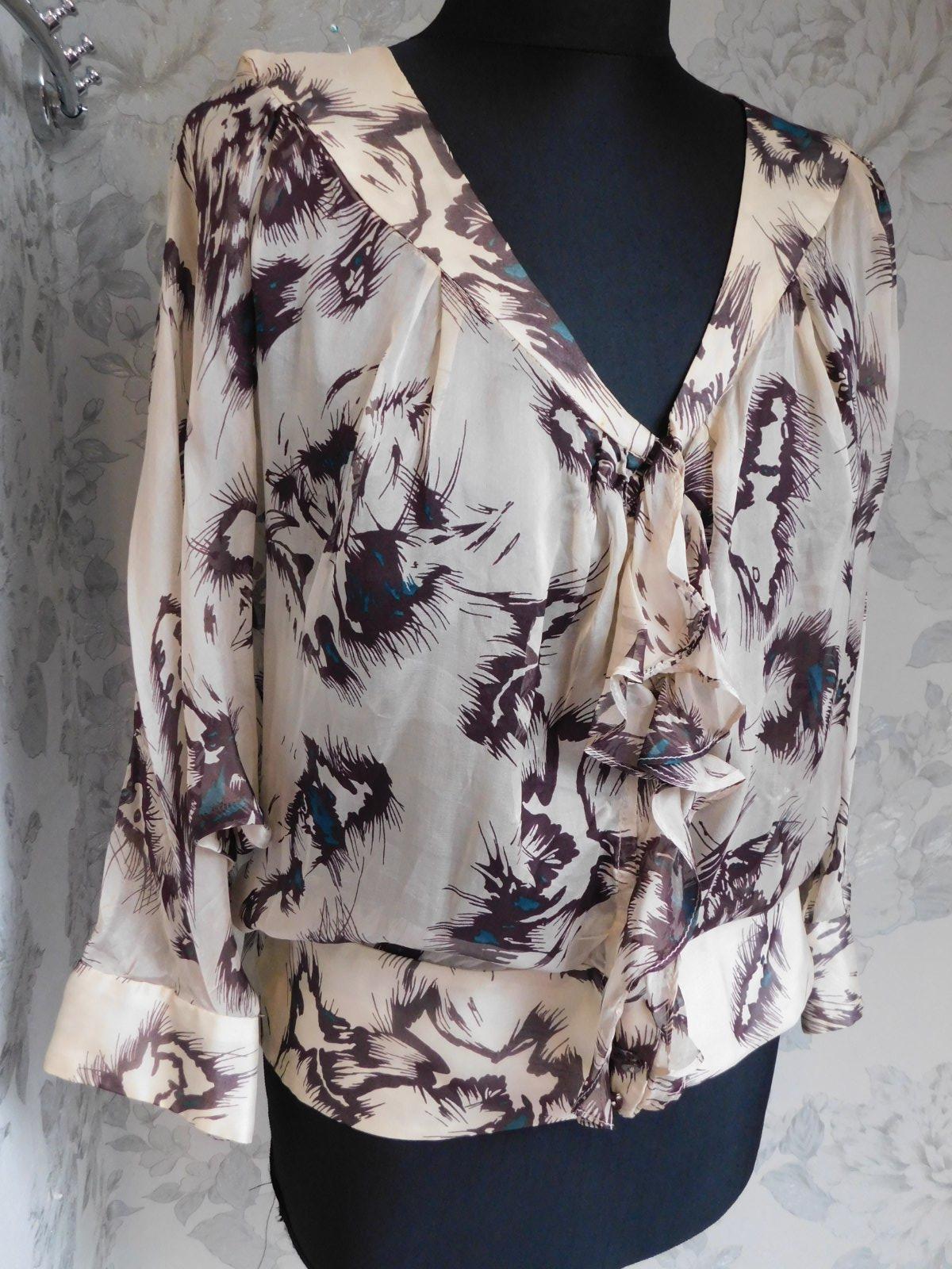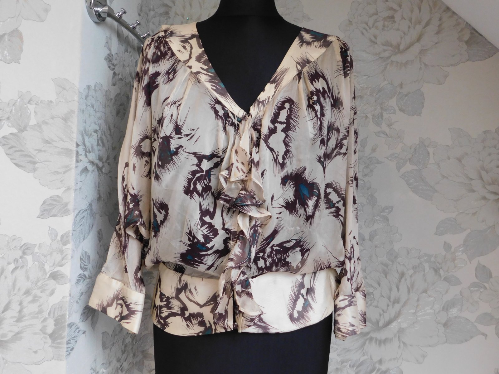 ZARA BASIC Trendy elegantna hodvabna bluzka kremovej farby so vzorom,z mierne priesvitneho materilau.100%hodvab.ako nova. m