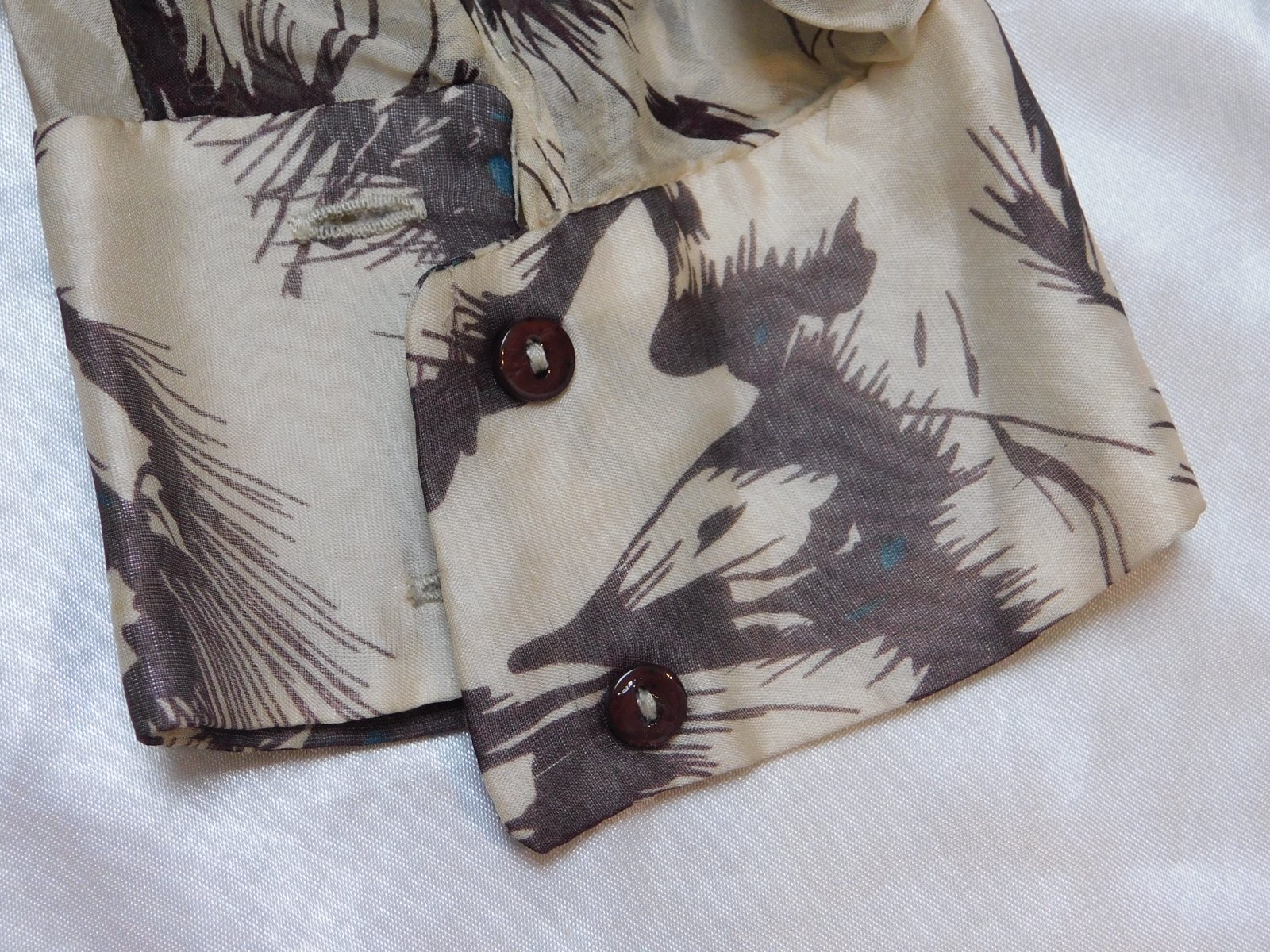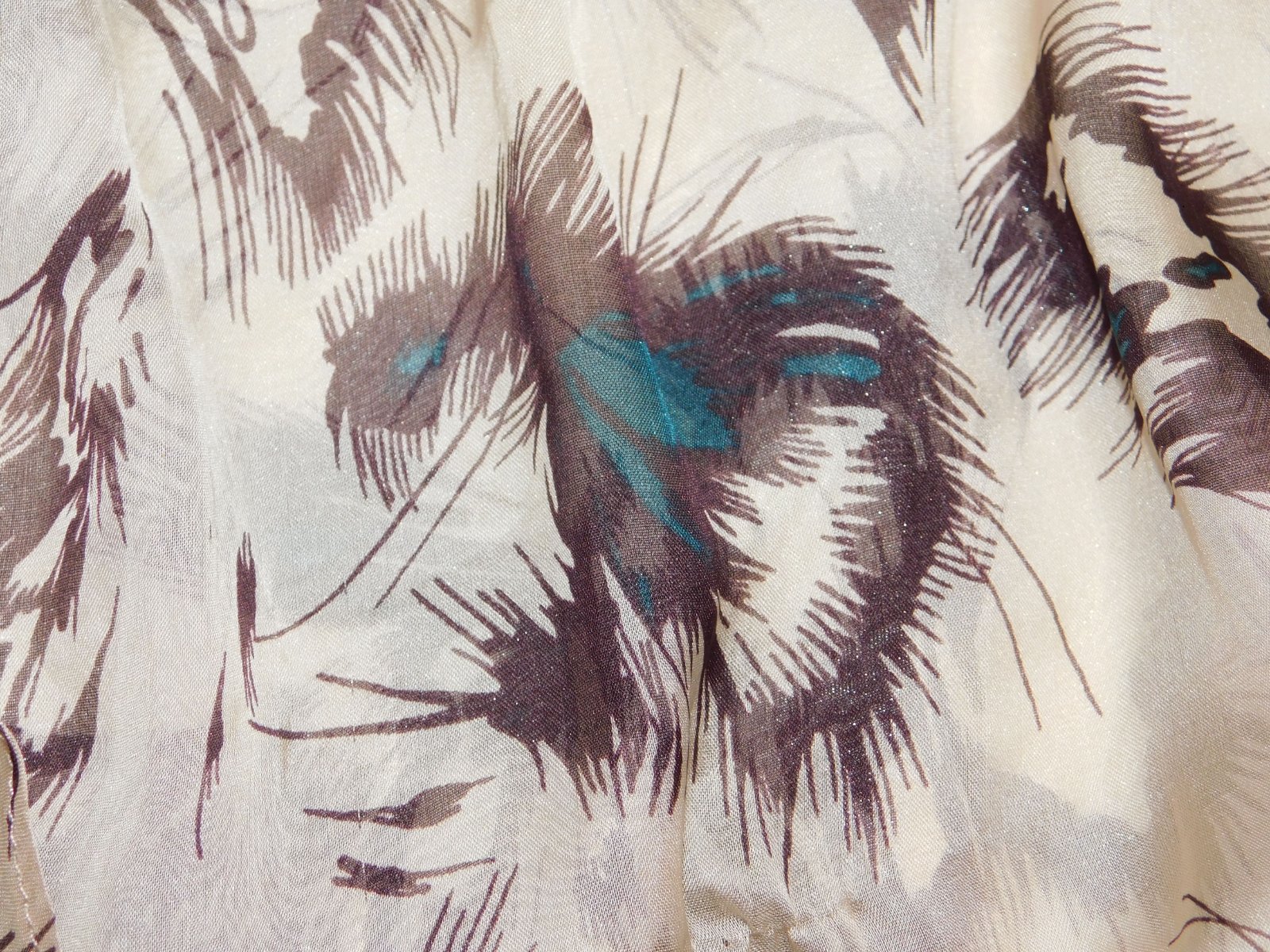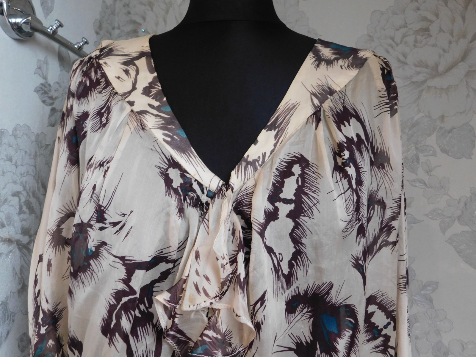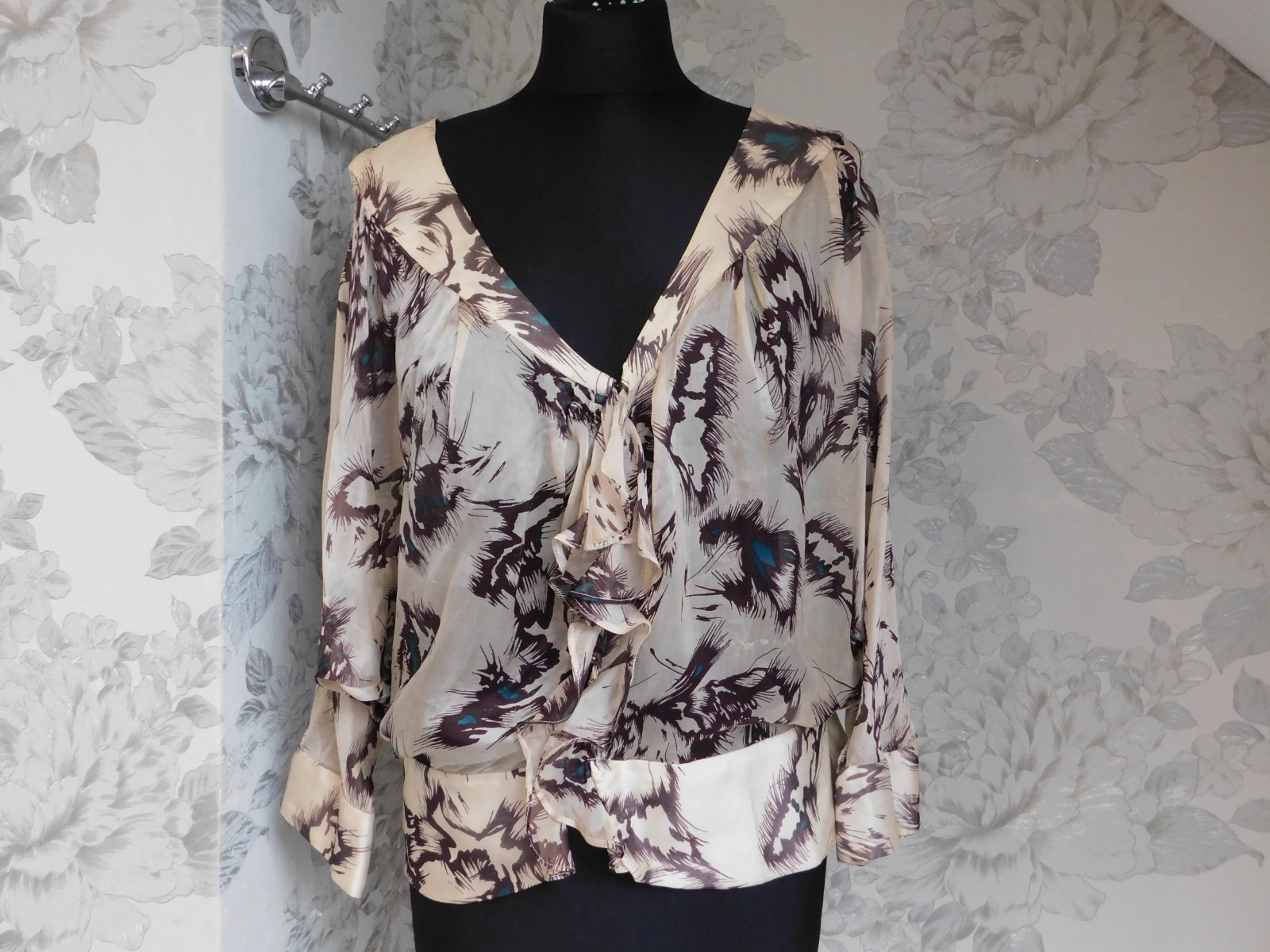 ZARA BASIC Trendy elegantna hodvabna bluzka kremovej farby so vzorom,z mierne priesvitneho materilau.100%hodvab.ako nova. m