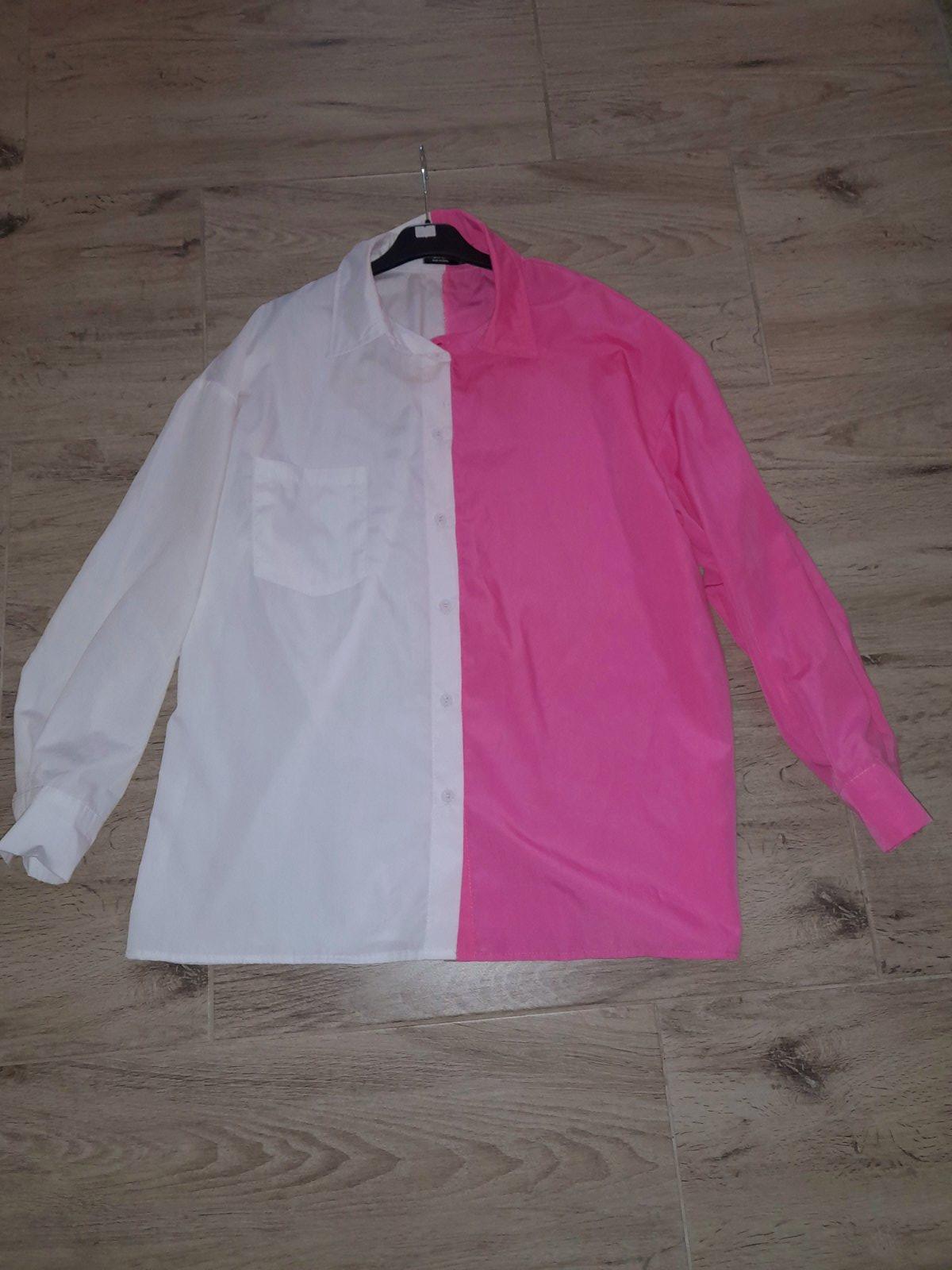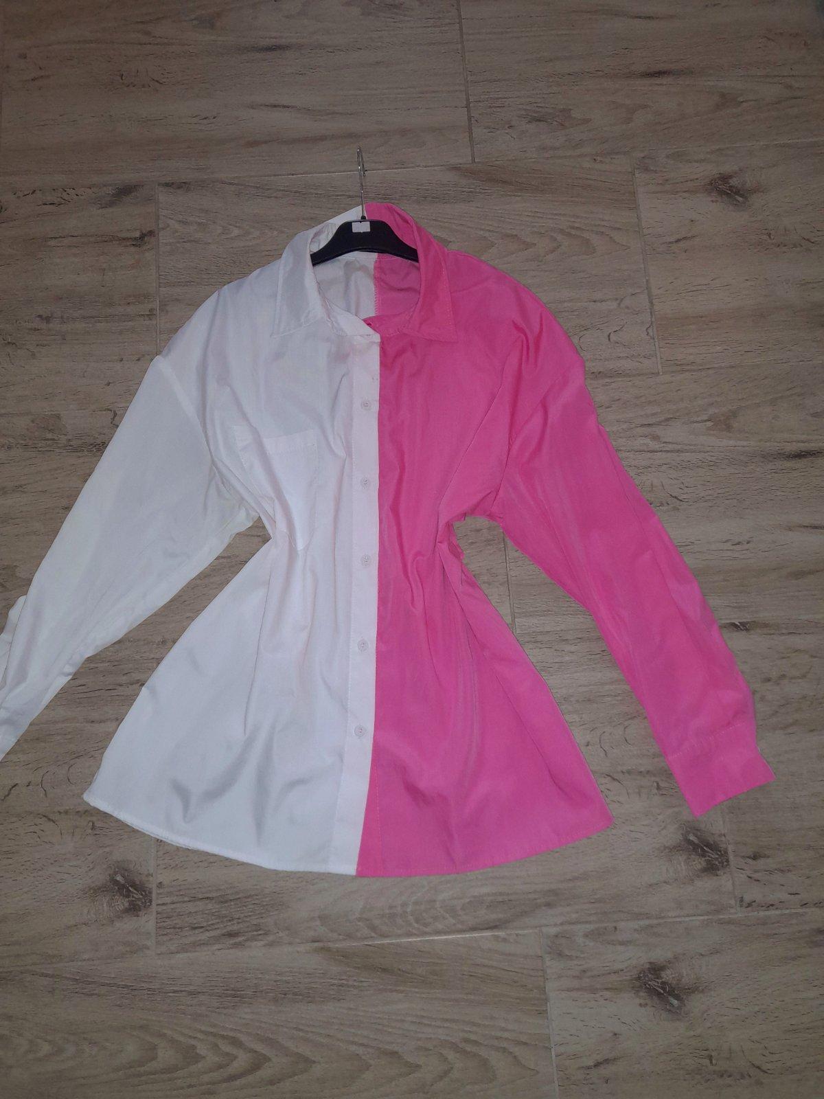 Predám krásnu, zaujímavú,dvojfarebnu košeľu Shein. Nosena,v super stave. Možno nosiť aj,ako oversize.