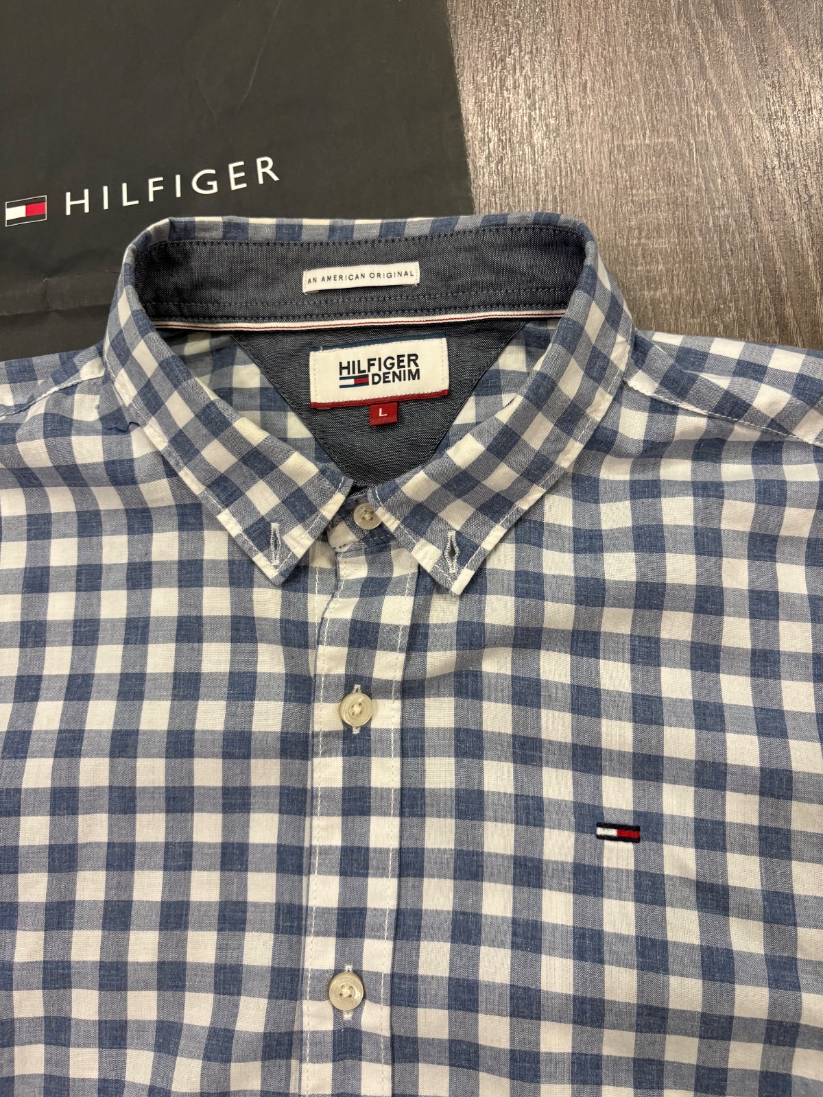 63.Tommy Hilfiger panska kockovana kosela,kosela,velkost L,dlzka je 78cm a dlzka rukava od krku je 84cm ,sirka v podpazusi je 55x2cm