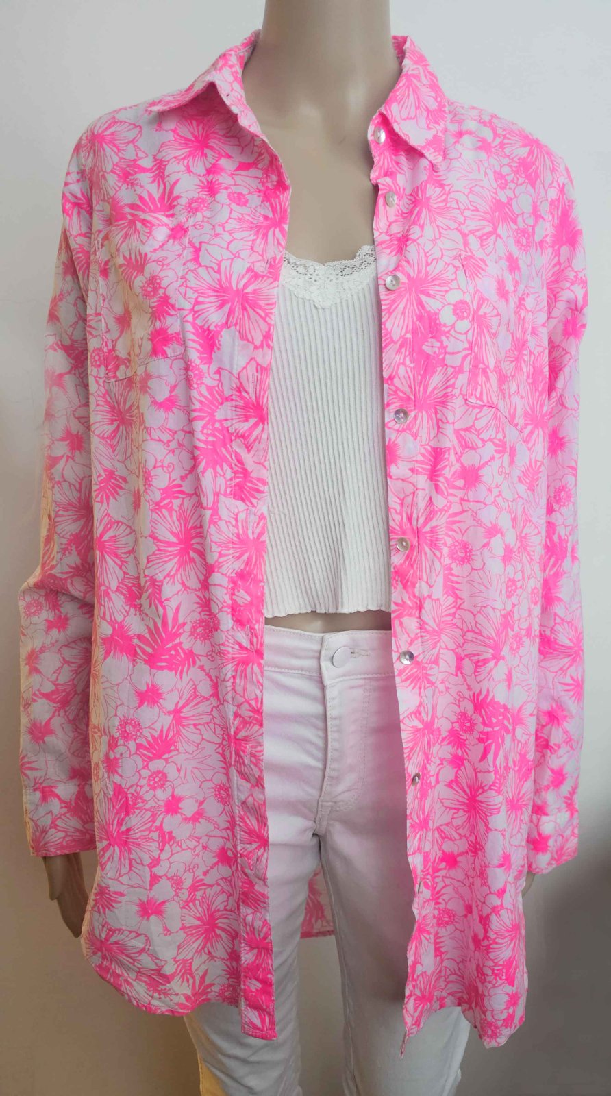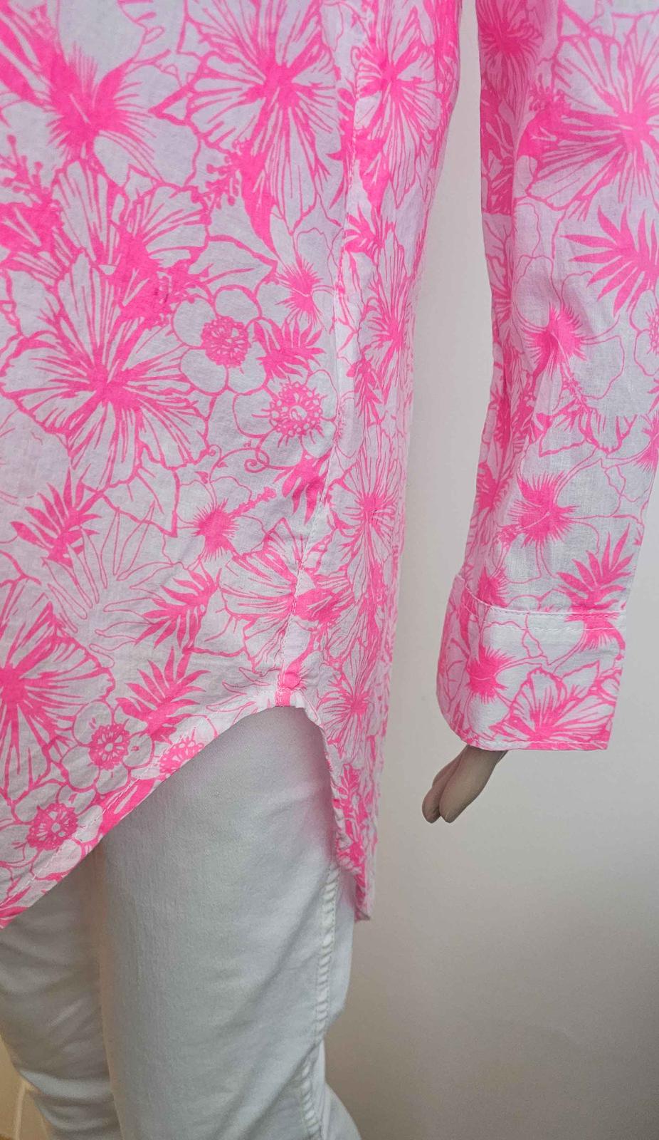 Výborný stav. 100% bavlna. Dĺžka predná 78cm, dĺžka zadná 86 cm, šírka v hrudníku 50x2 cm. Dĺžka rukáva nastaviteľná. Zn. Janina.