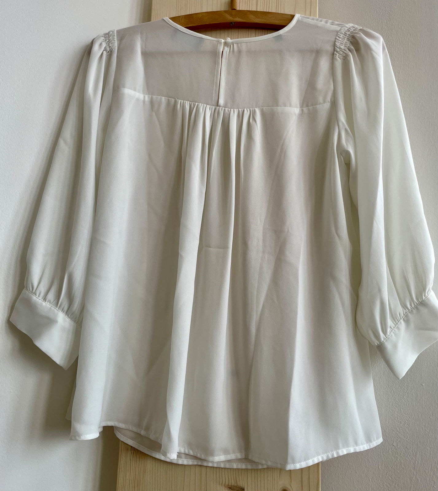 Kremova bluzka Selected Femme s nariasenou aplikaciou na pleciach, bez poskodeni, oblecena 2x