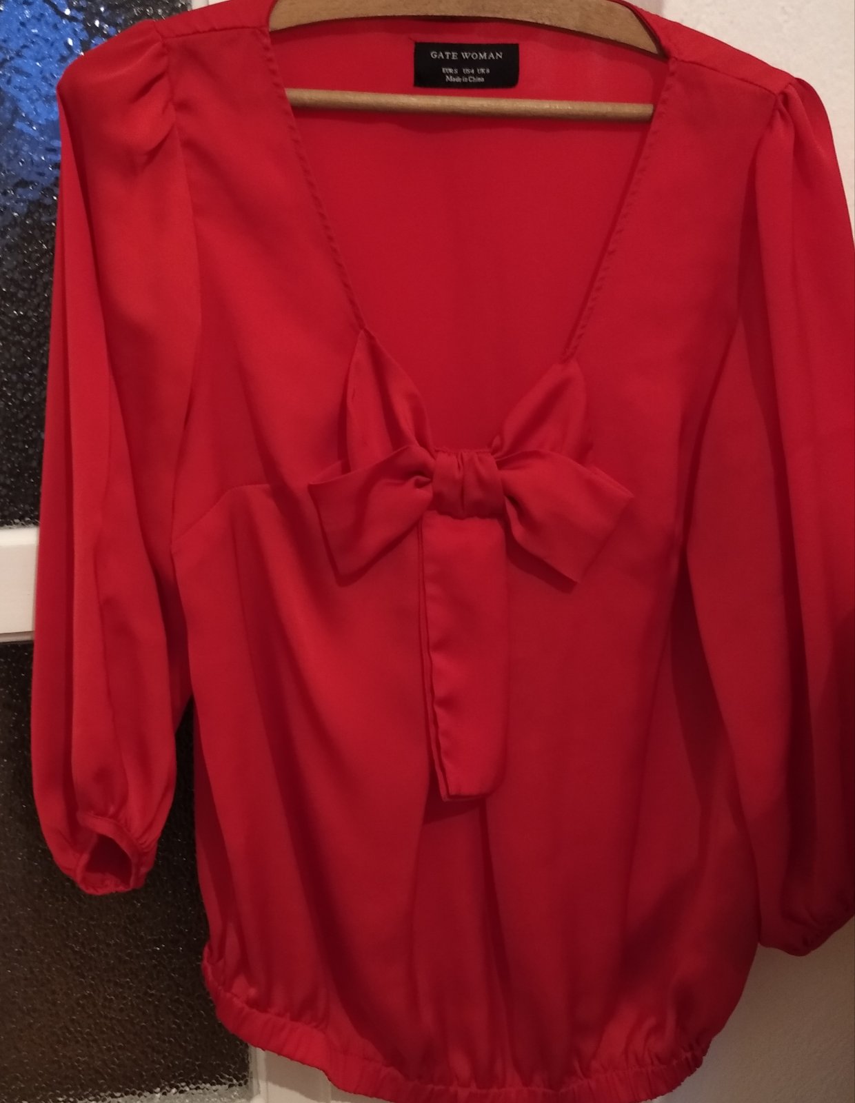 Predám blúzku. Blúzka je v peknom nosenom stave. Vzdušný materiál. Rozmery blúzky : Dĺžka blúzky je 60 cm, šírka v podpazuší je 46,5 cm, pevný materiál, čiže nepustí ďalej. Dĺžka rukáva od krku 51 cm, dĺžka rukáva od ramena je 46 cm. Blúzka môžete použiť na vianočný večierok, alebo k sviatočnému stolu na Vianoce. Plus poštovné.