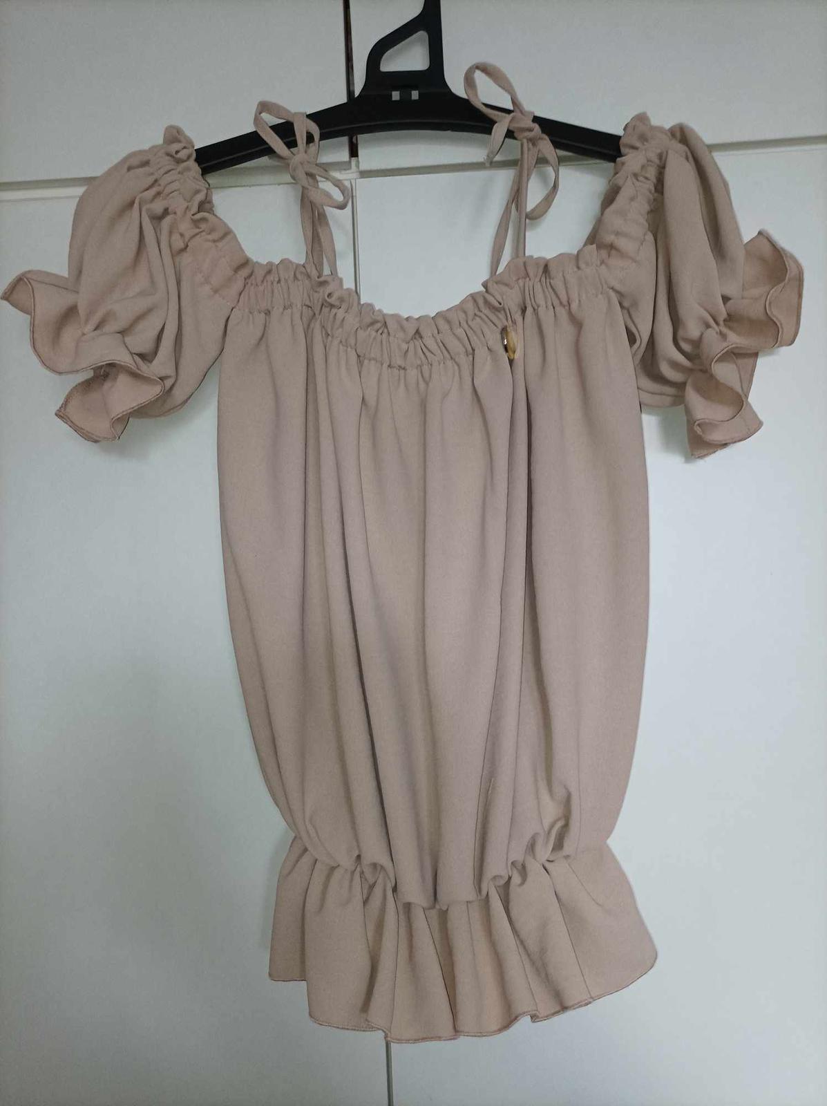 Pekná blúzka zn.COLORI .Mali sme ju len 1x oblečenú.Rukávy sú do gumky od pleca a hore mate na uviazanie.Spodok je tiež do gumičky.