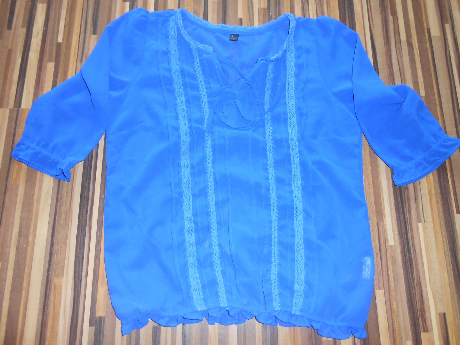 Blúzka s trojštvrťovými rukávmi, farba je pekná, kráľovsky modrá, vo výbornom stave, bez dier, fľakov, žmolkov, rukávy merané od krku 46cm, šírka v podpazuší 51cm x 2, dĺžka 60cm. Cena + poštovné. (E)