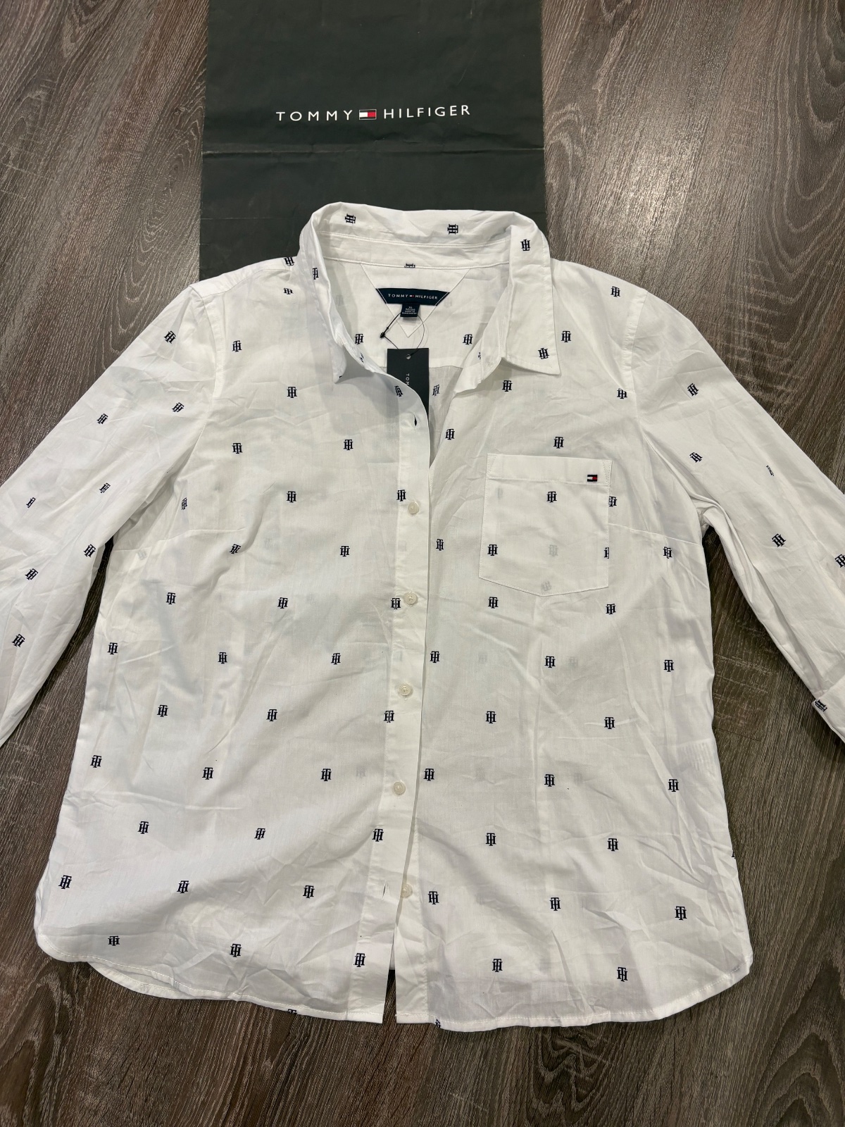 111.Tommy Hilfiger nova damska pecková kosela vo velkosti XL,dlhe rukavy no daju sa skratit na 3/4.Dlzka je 69cm,dlzka rukava od krku je 76cm a sirka v podpazusi je 58x2cm