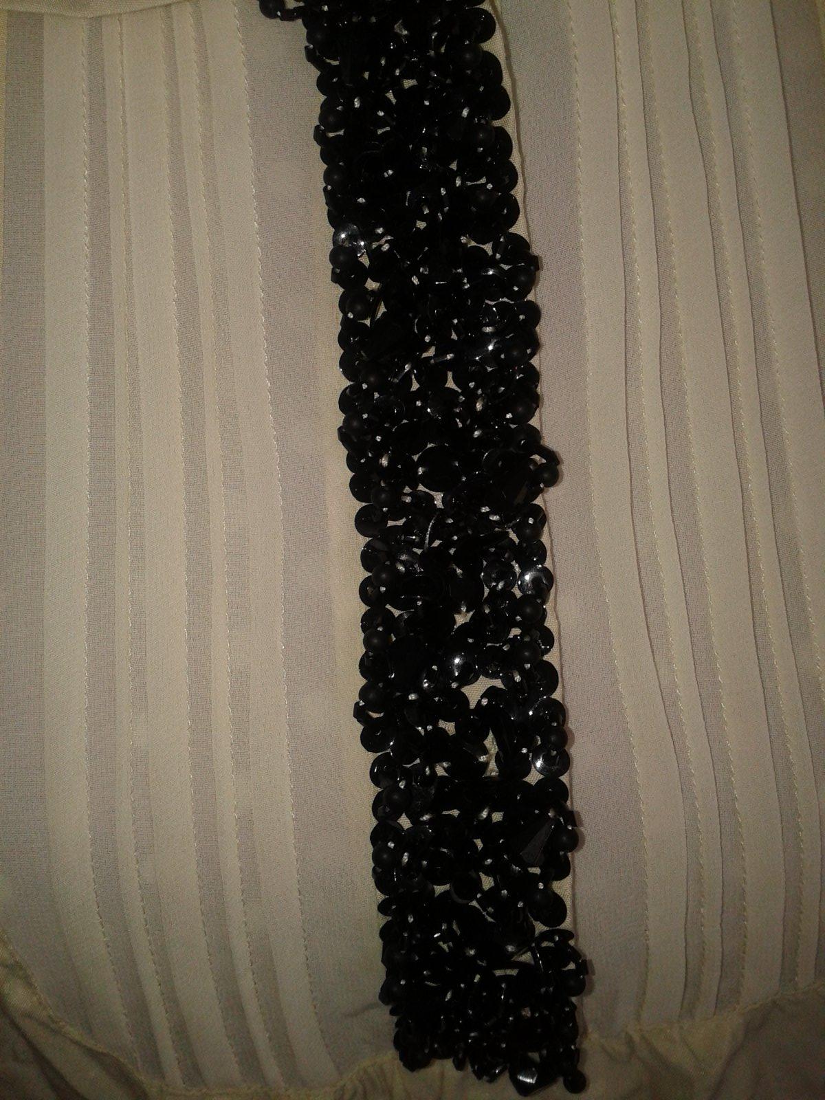 oblečená raz...len skladovaná, treba vyžehliť, neelastická, vo výstrihu kamienky, dlžka 65, prsia 45x2, píše väčšia, sedí podľa mier