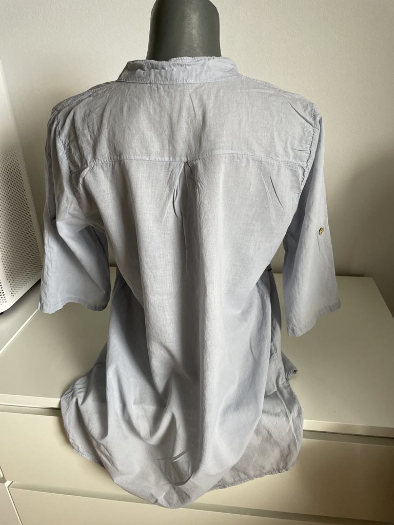 Nova kosela sivej farby so striebornymi bodkami. Vel.38..tak 38/40 by som povedala.. vzadu predlzena, vhodna aj k leginam..rukavy sa daku vyhrnut a zapnut na 3/4.