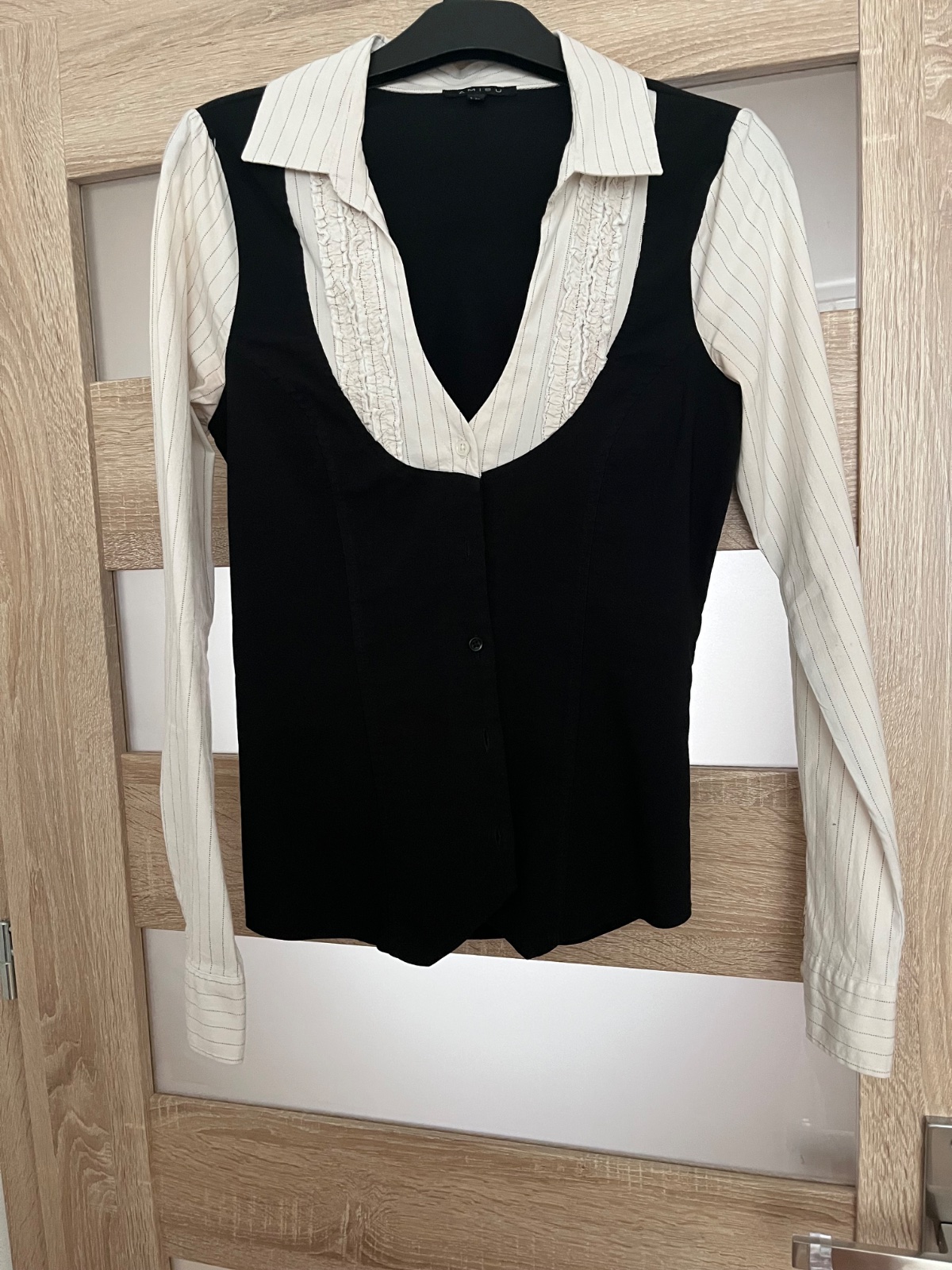 Predám dámsku vypasovanú košeľu v dvojitom vzhľade s hlbokým výstrihom, ako nová. V prípade potreby premeriam.