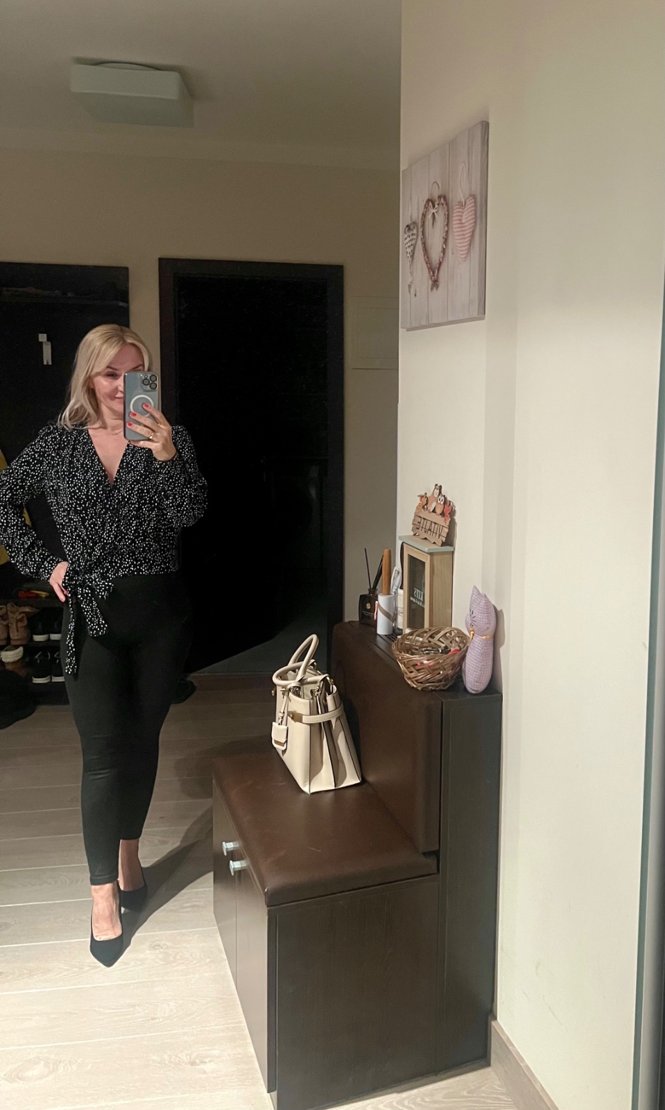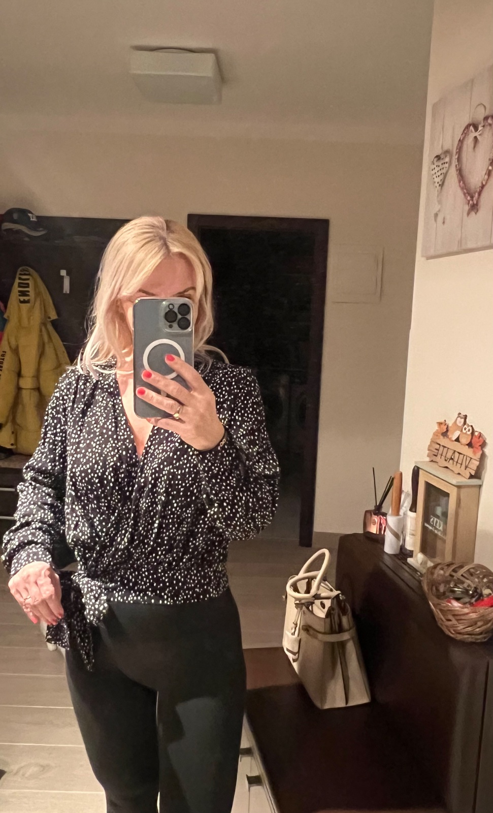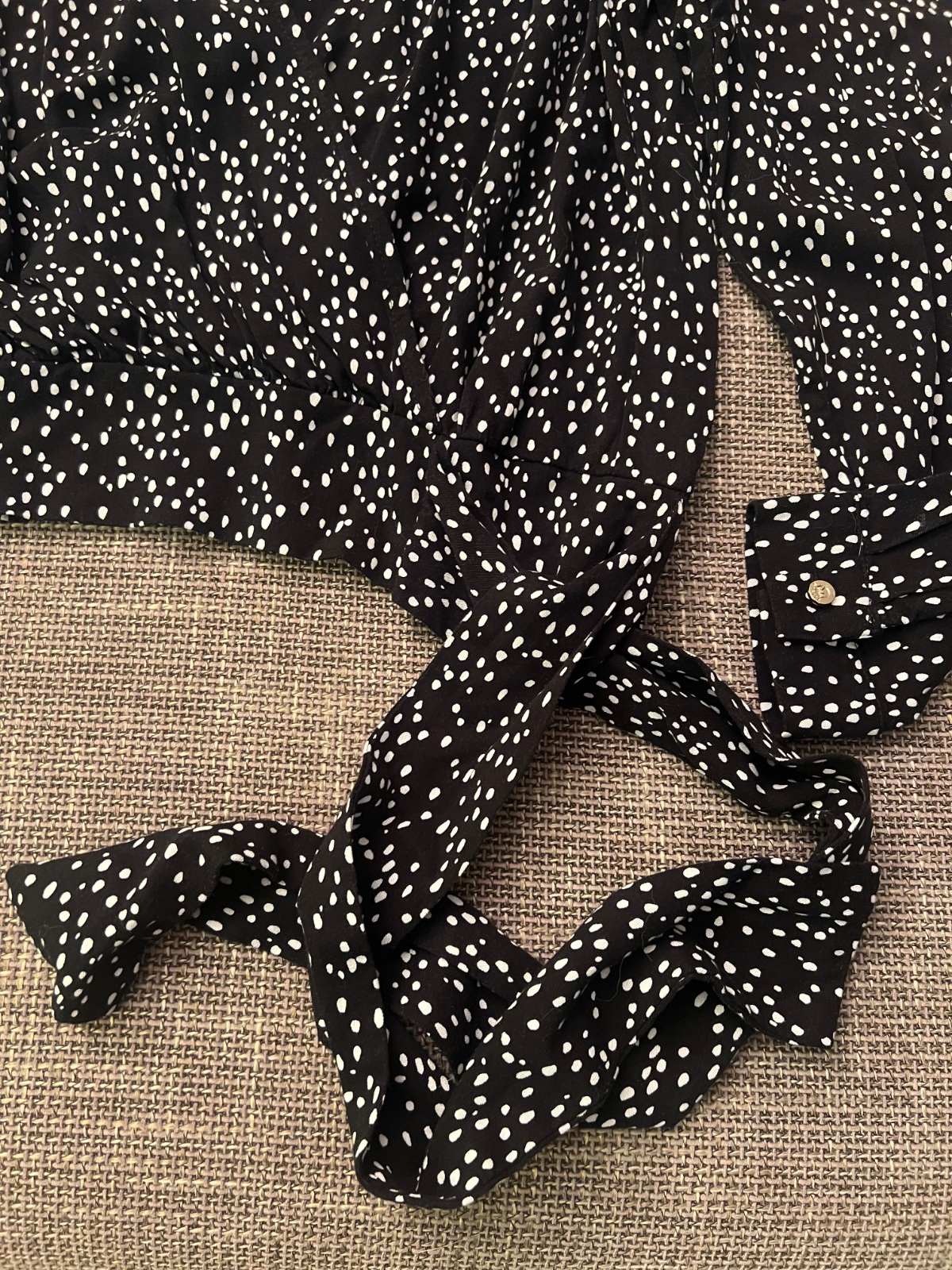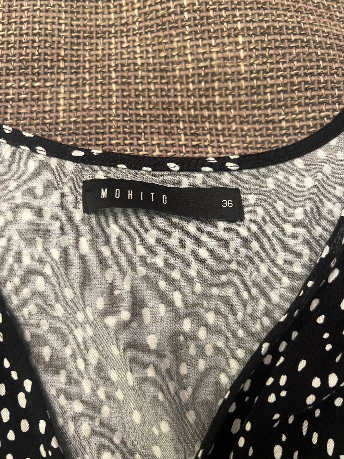Max. dvakrát oblečená. Čierna s bielymi guličkami, decentný výstrih.