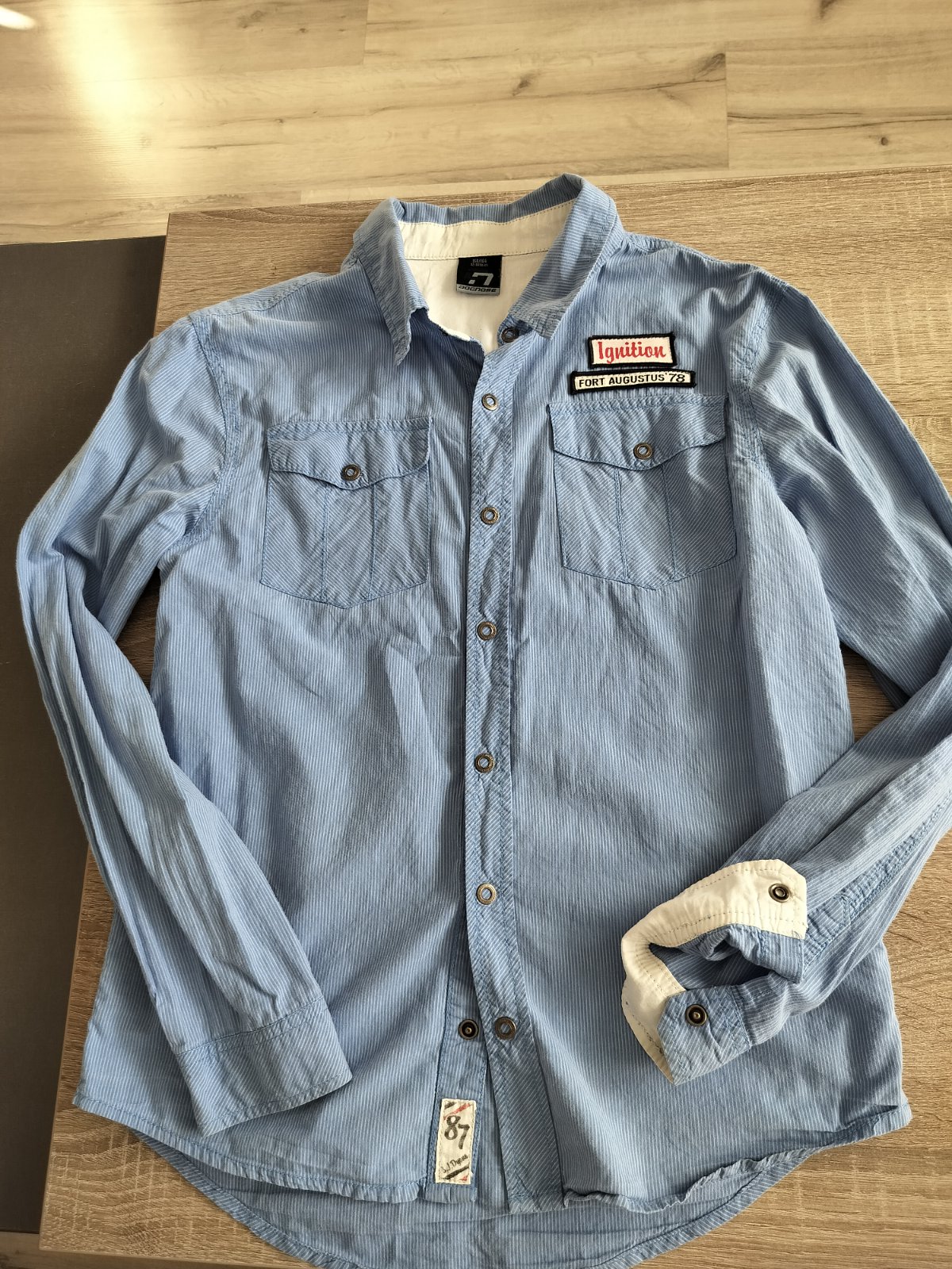 Predám chlapčenskú košeľu zn. Dognose. Bez poškodení. Veľkosť: 158/164 Šírka: 50,5 cm Celková dĺžka: 67 cm Dĺžka rukáva - horná: 20,5 cm (od pleca) Dĺžka rukáva - spodná: 8,5 cm Dĺžka od výstrihu ...
