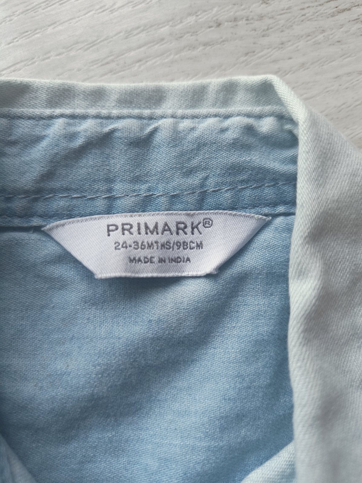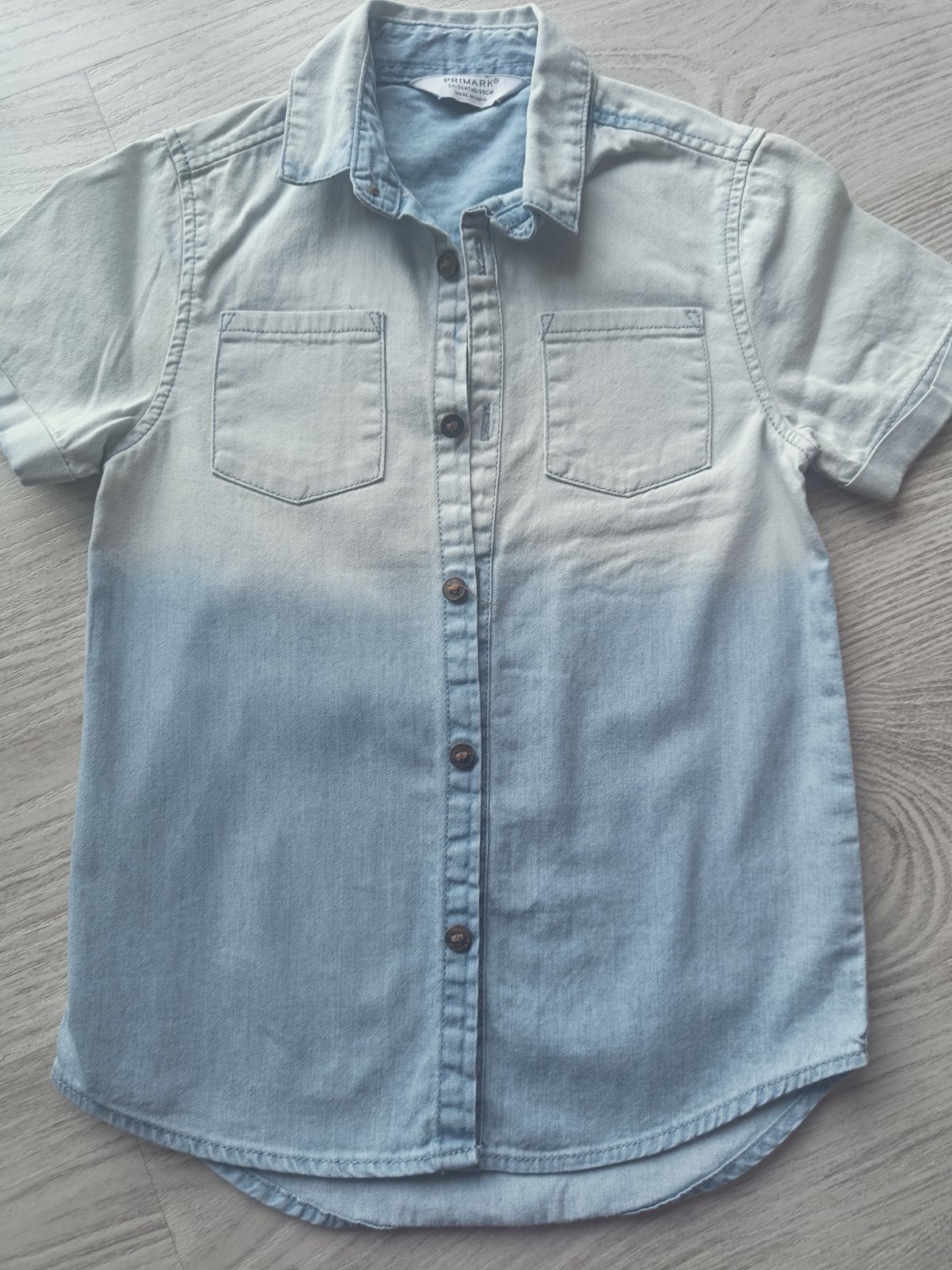 Málo nosená riflova košeľa s krátkym rukávom. Zn. Primark, veľ.98, top stav