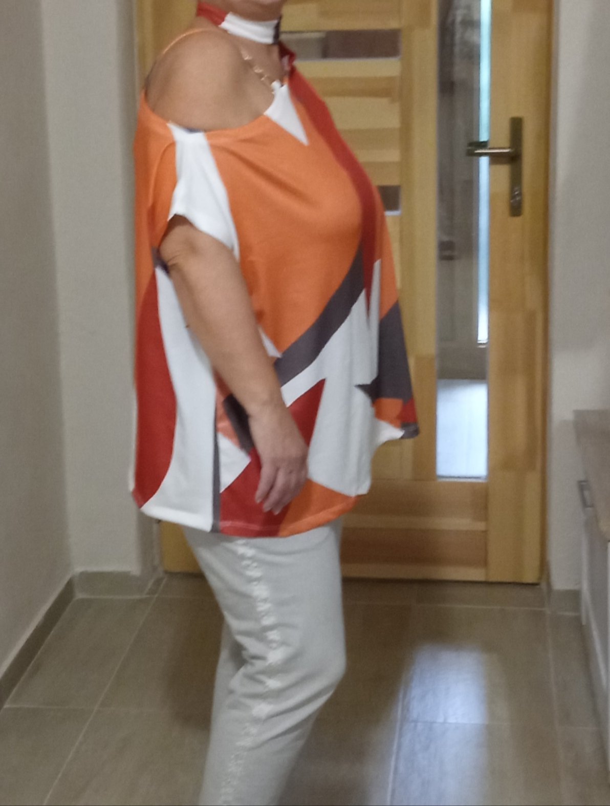 Krásny elegantný top pre dámy Príjemný, pohodlný, netlačí voľný strih, ktorý zakrýva všetky nedostatky. Príjemný model. Veľkosť : 42, 44, 46, 48, 50 Poľská značka, vyrobené v Poľsku. Farba ako na f...
