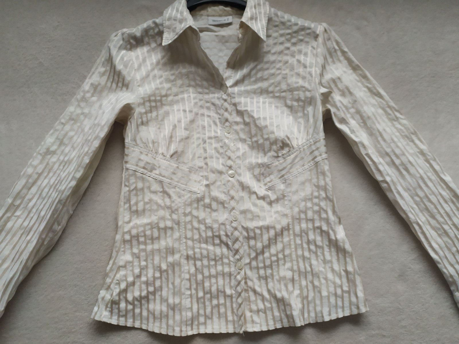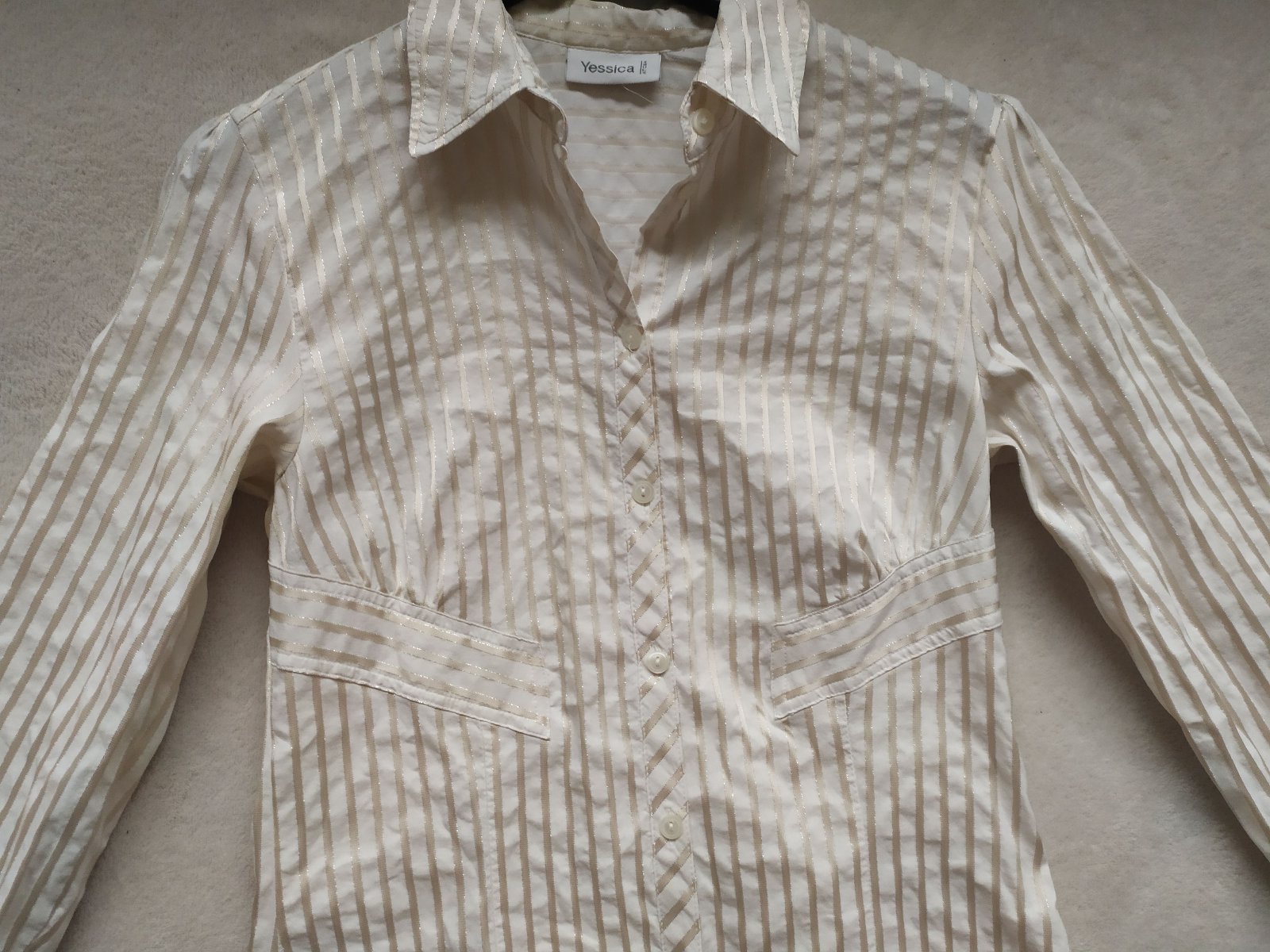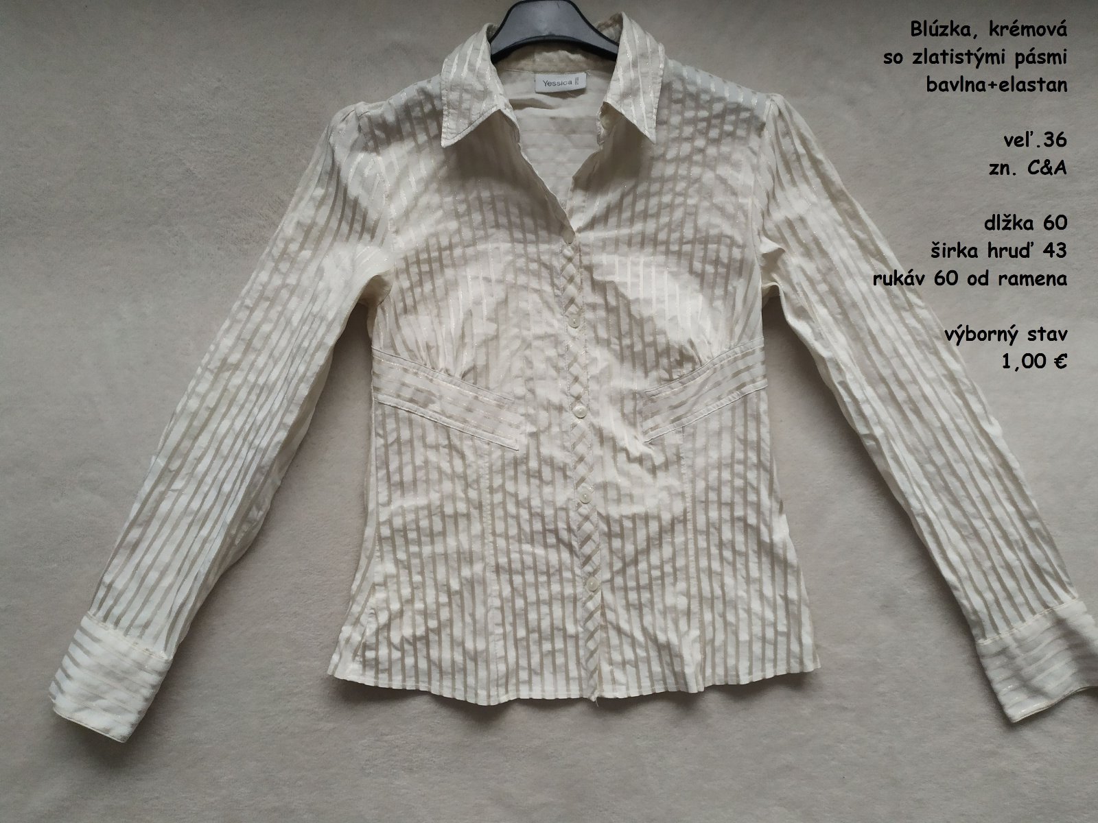 bavlna+elastan, výborný stav, krémová so zlatistými pásmi