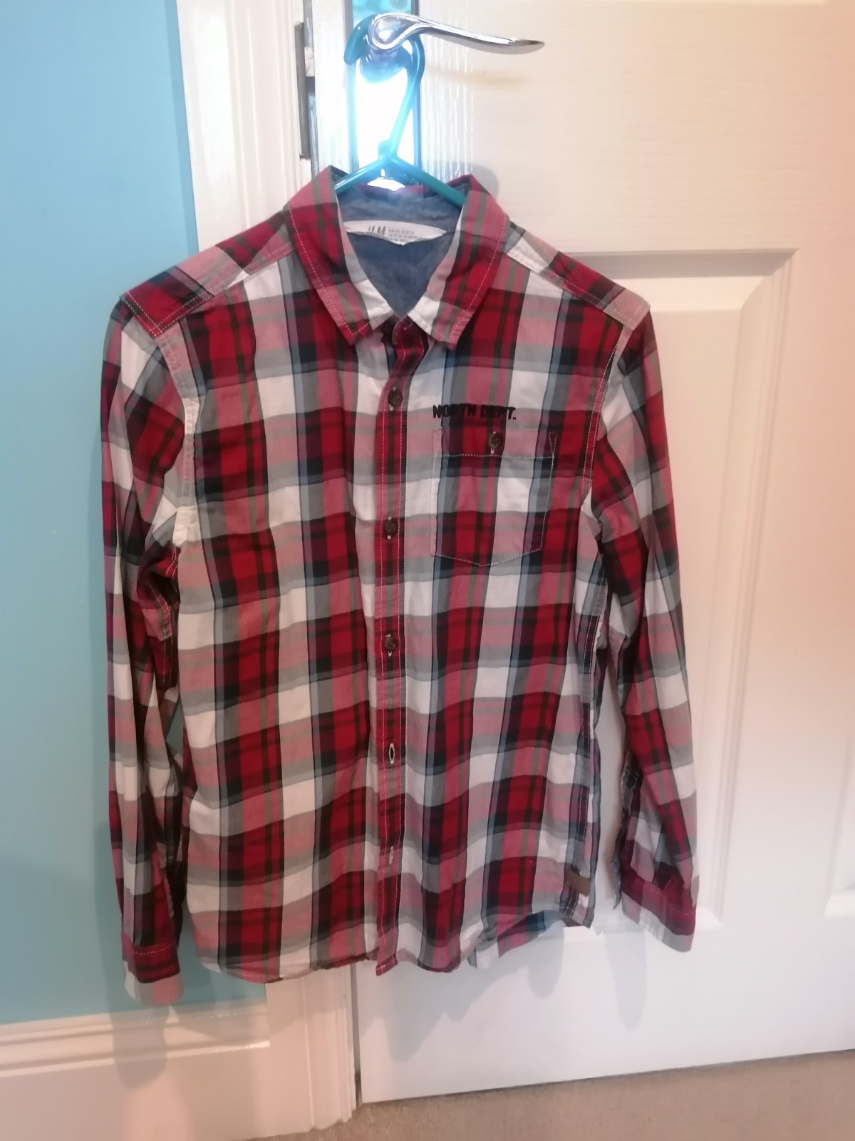 Predám košelu vel.146 karovaná dlhý rukáv a vel.140 bledo modrá krátky rukáv