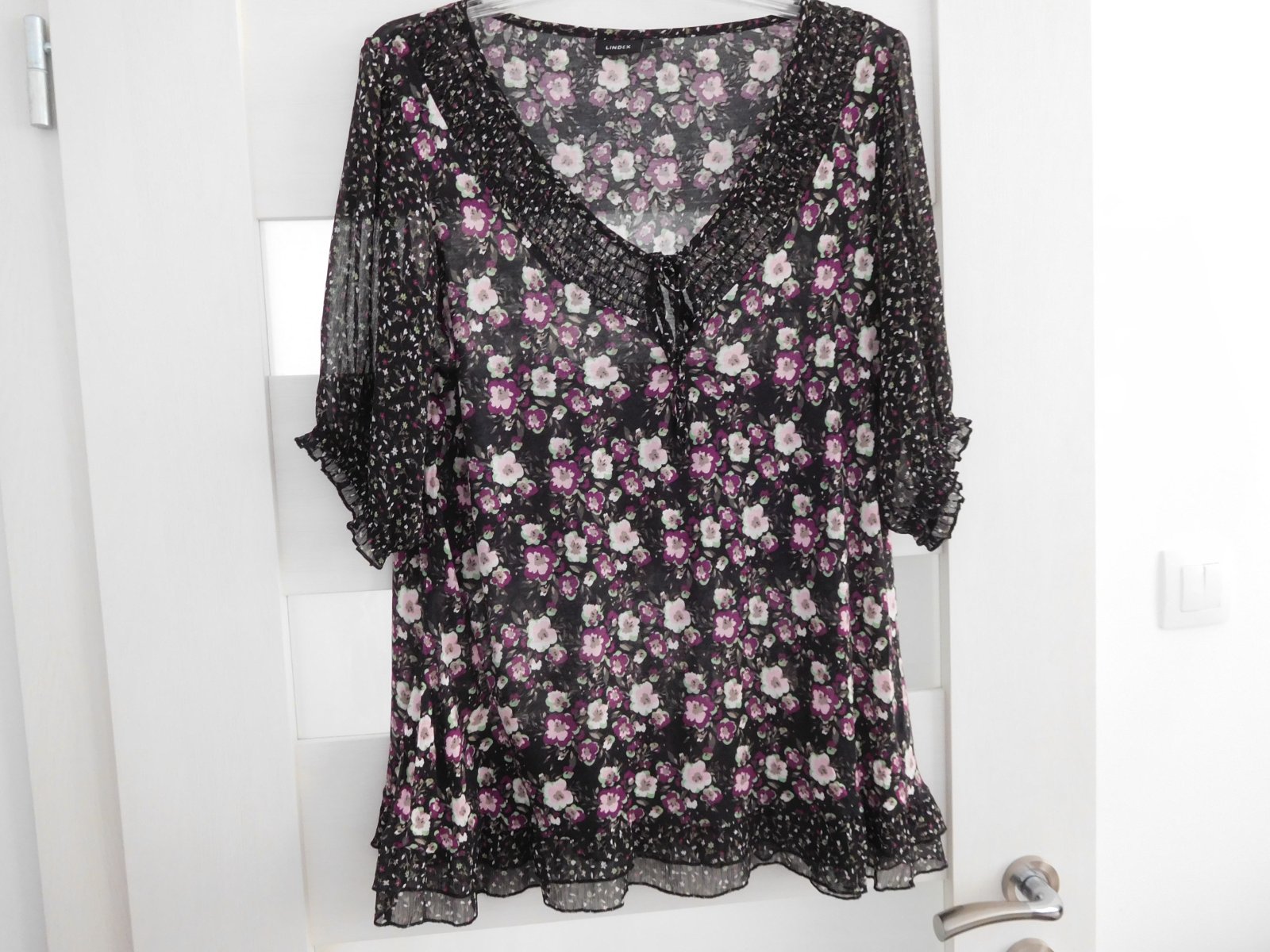 krásna padavá blúzka značka Holly&Whyte by Lindex, veľ. L sedí , nemeriam, mierne transparentná, krásna aplikácia pri výstrihu spa.