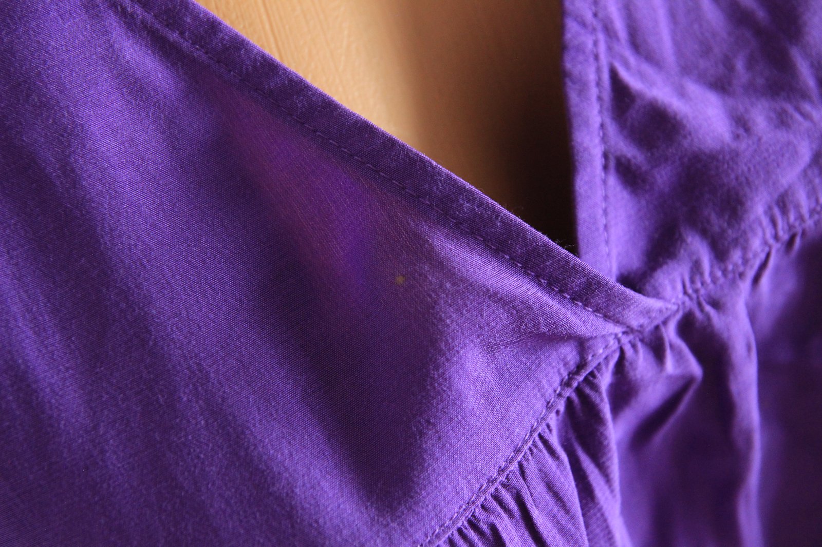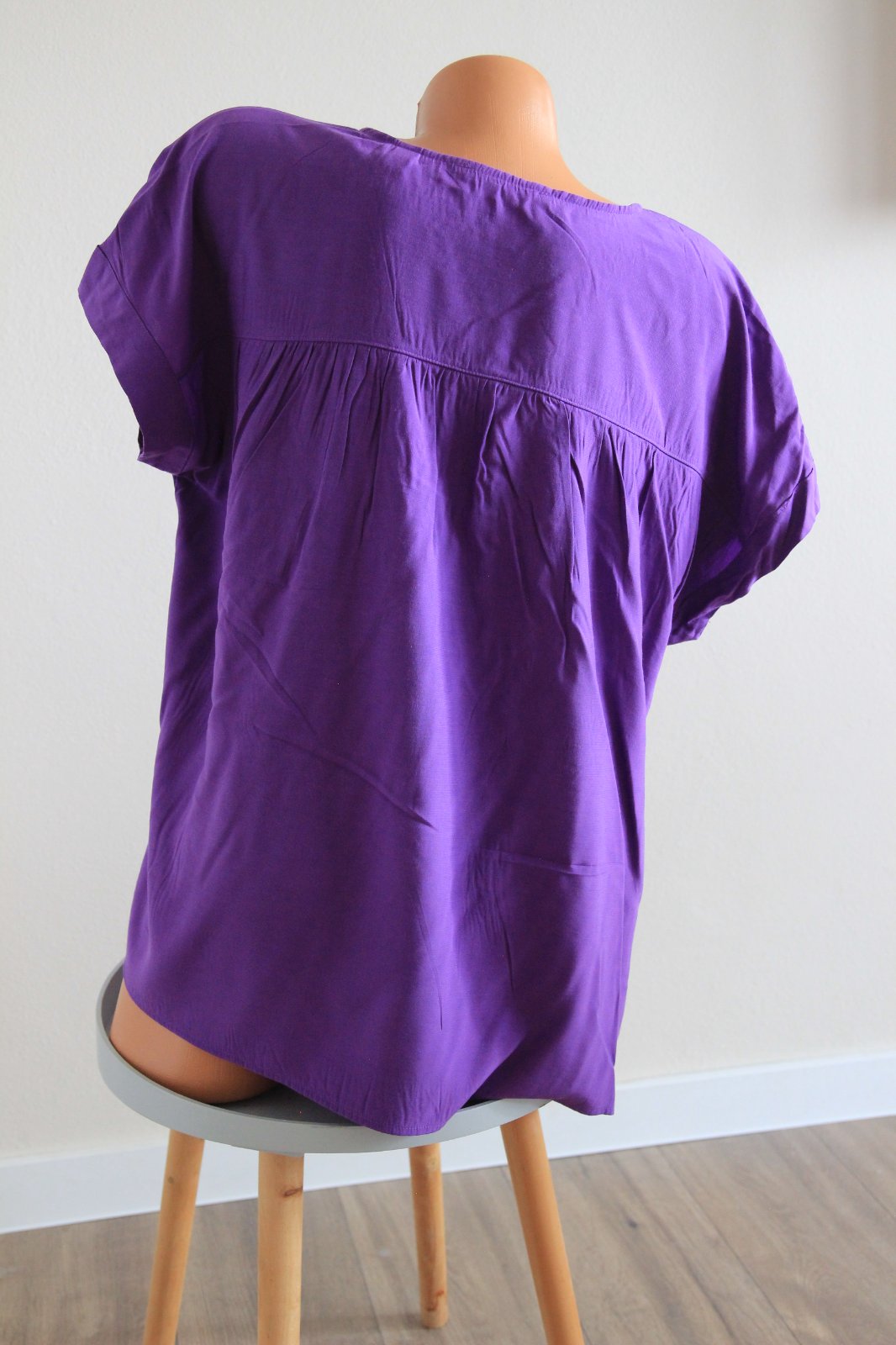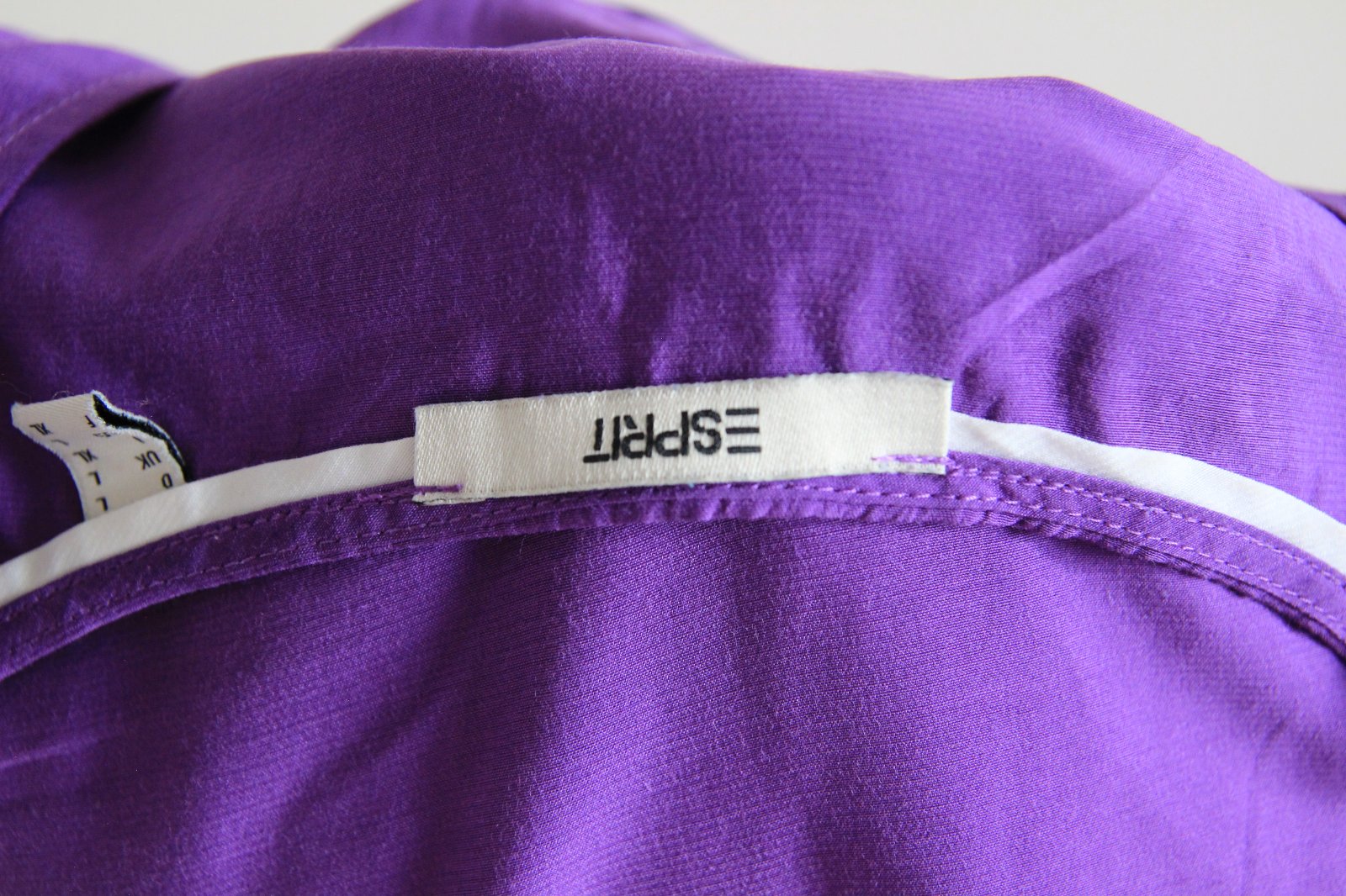 Fialová blúzka zo 100% viskózy, značka Esprit, veľkosť uvedená L, sedí aj na XL. Vpredu má dva 1mm fliačiky, inak top stav.