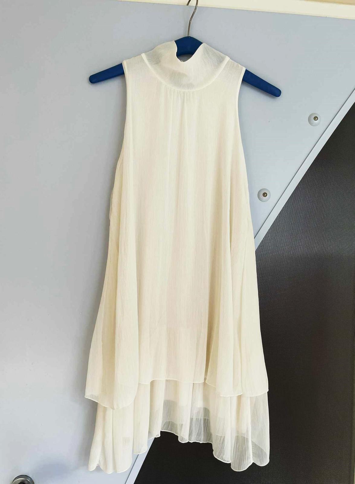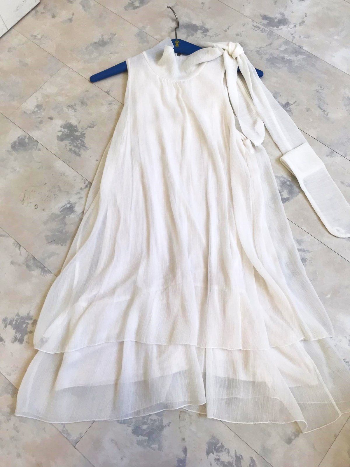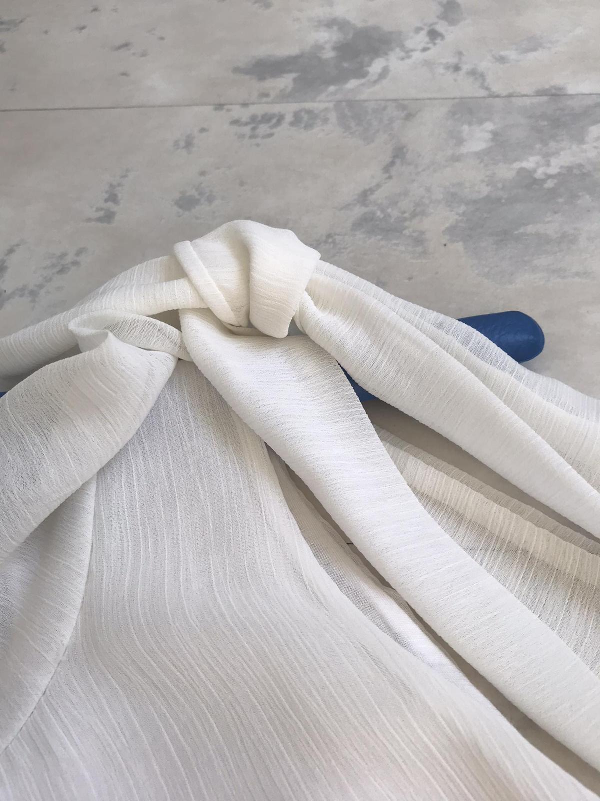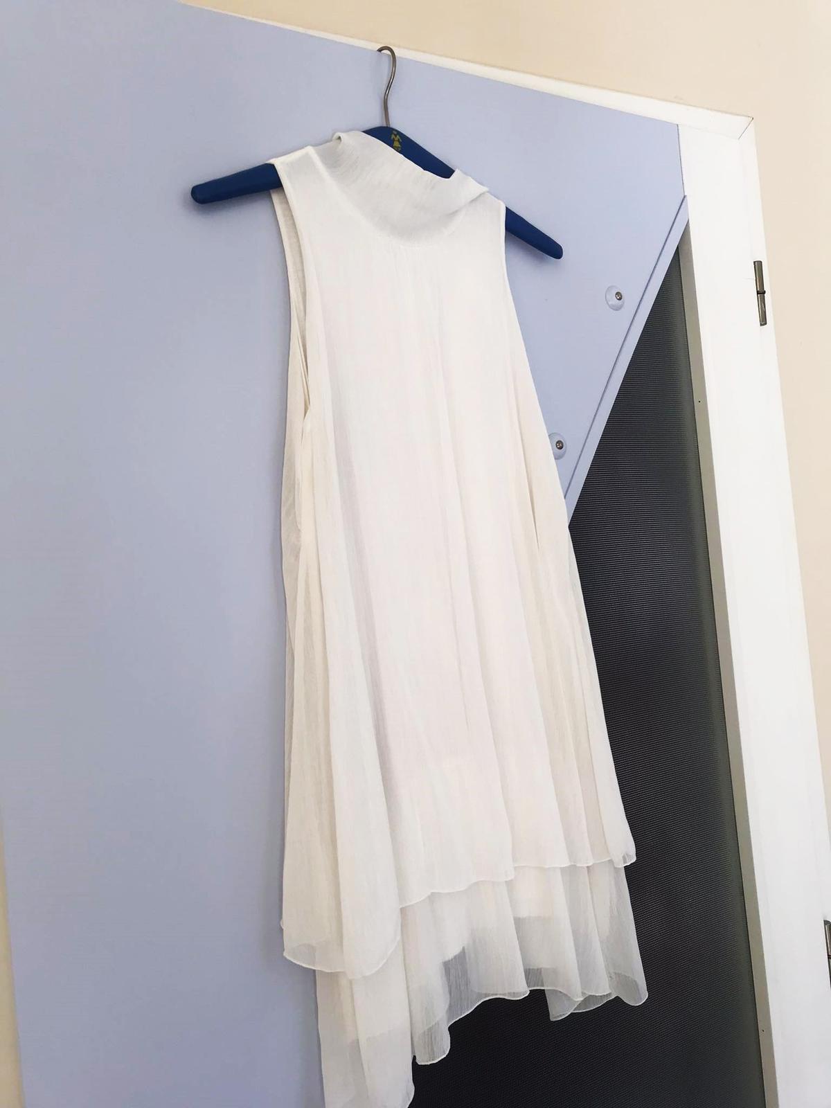 jemný zaujímavý dlhší top, vrstvený, na spodku je tenučká tričkovina ukončená dlhším mušelínom,ktorý prečnieva zo spodu popod vrchný diel,ktorý je kratší,krásne riešený stojačik ukončený stužkami na uväzovanie,šírka = 50 x 2 cm,dlžka od pazuchy dole = 60 cm,95% viskóza,5% elastan,super aj k dlhým legínam,ale nielen,krásne zamaskuje väčšie prsia