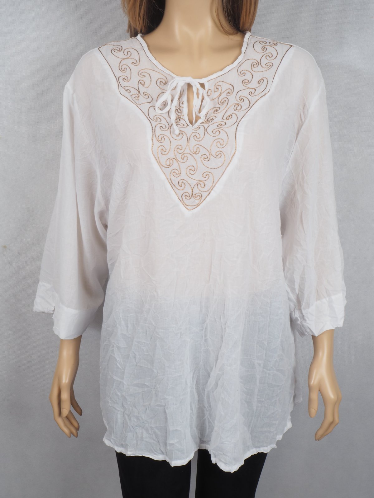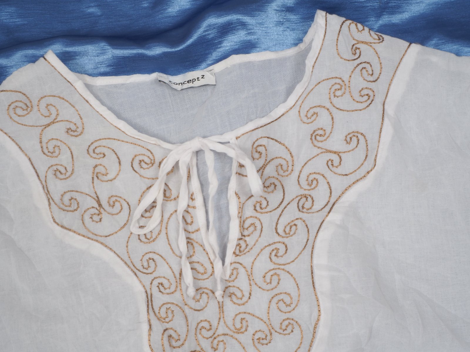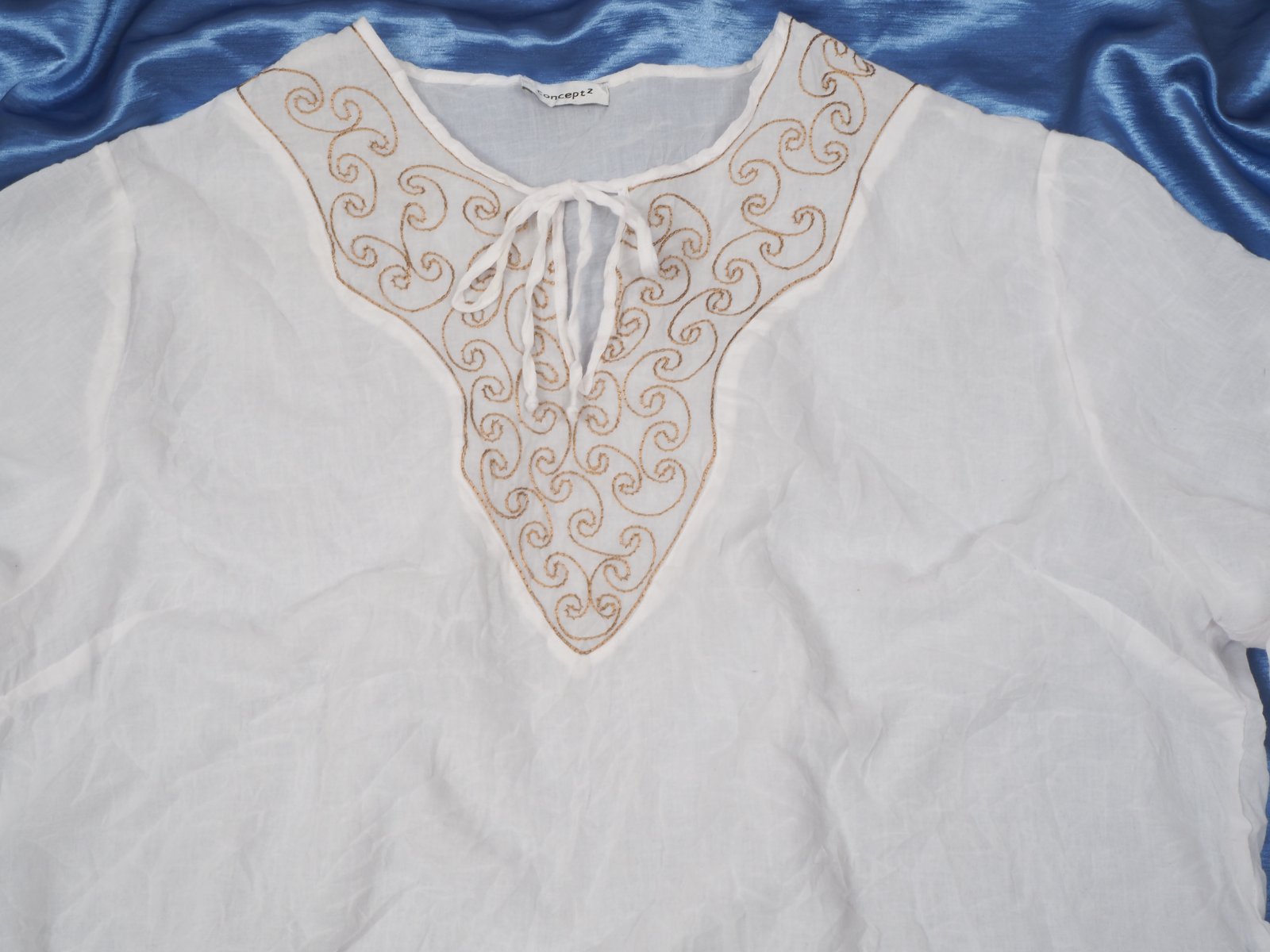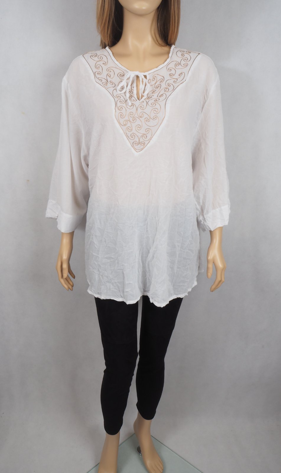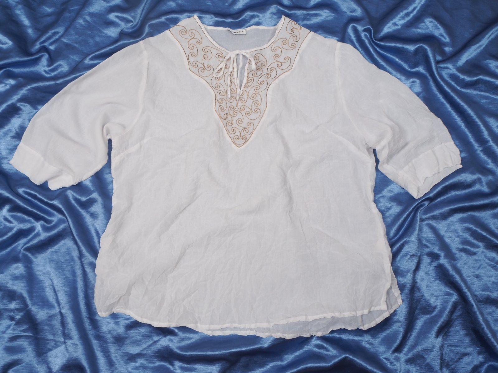 Kvalitná biela blúzka s výšivkou vpredu, zloženie materiálu na detailnej fotke, super stav.
