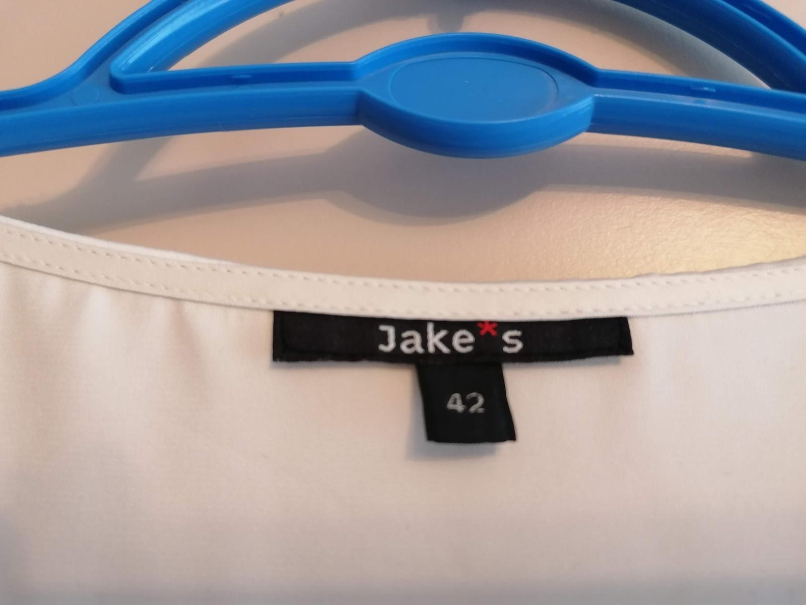 Elegantná blúzka Jake*s, krásna v kombinácii so sakom, jemná a ľahká, 100% polyester, svetlo krémová, výborný stav, ako nová. Veľkosť 42/XL/14, sedí skôr na veľkosť L/40, pod pazuchami 50 cm, dĺžka 61 cm. Pozri ďalšie ponuky, viac kusov zľava 5-25%. Po zaplatení ceny a poštovného na účet posielam aj poštou.