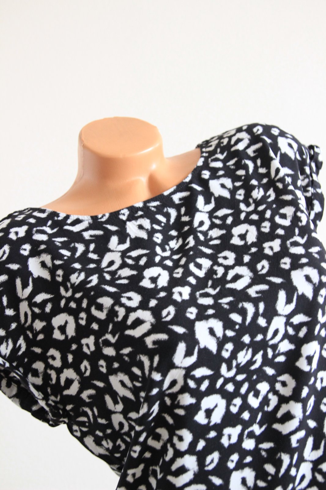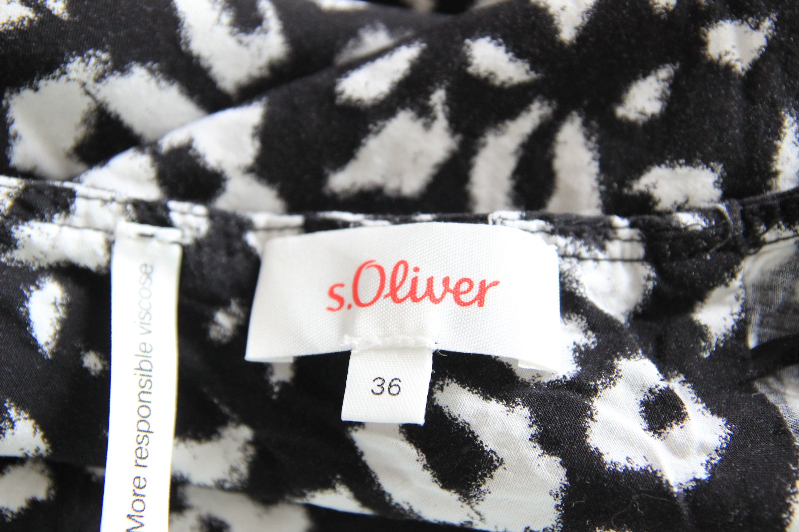 Čierno biely leo top od s.Oliver, veľkosť S, materiál je 100%viskóza. Top stav. Na chrbte je výstrih.