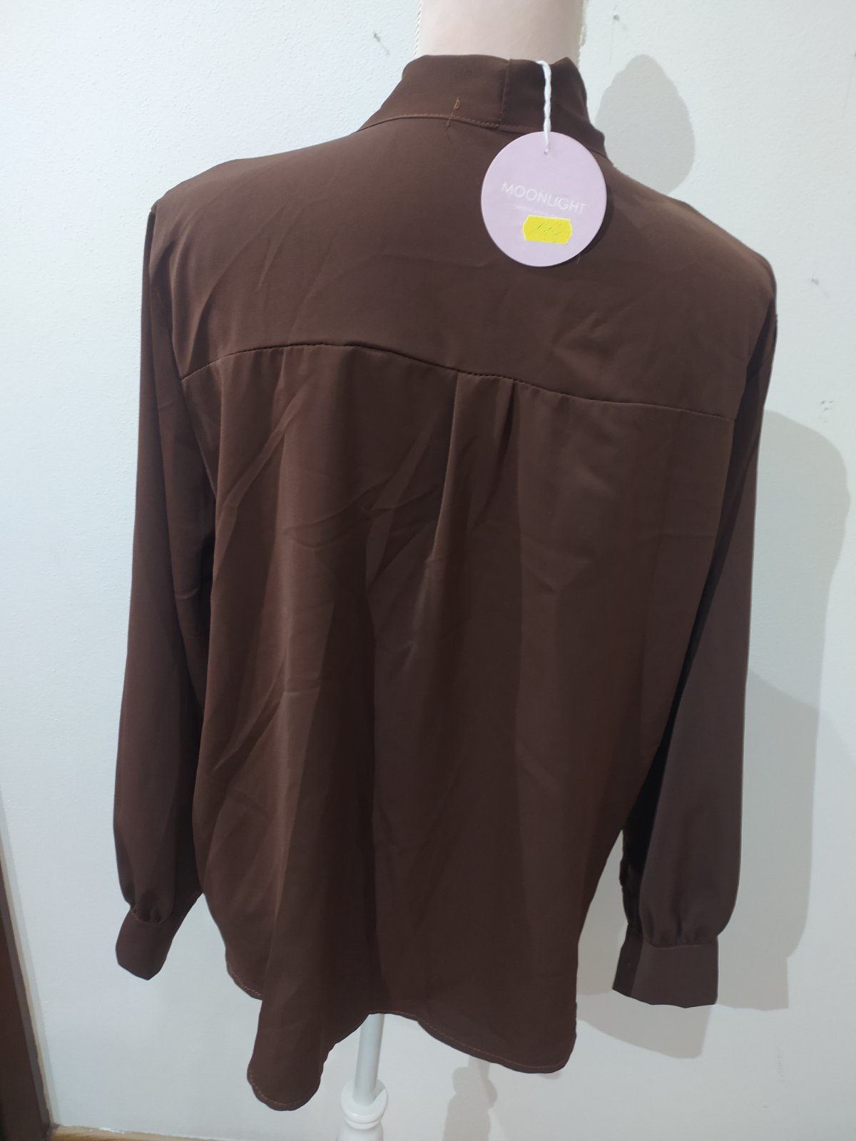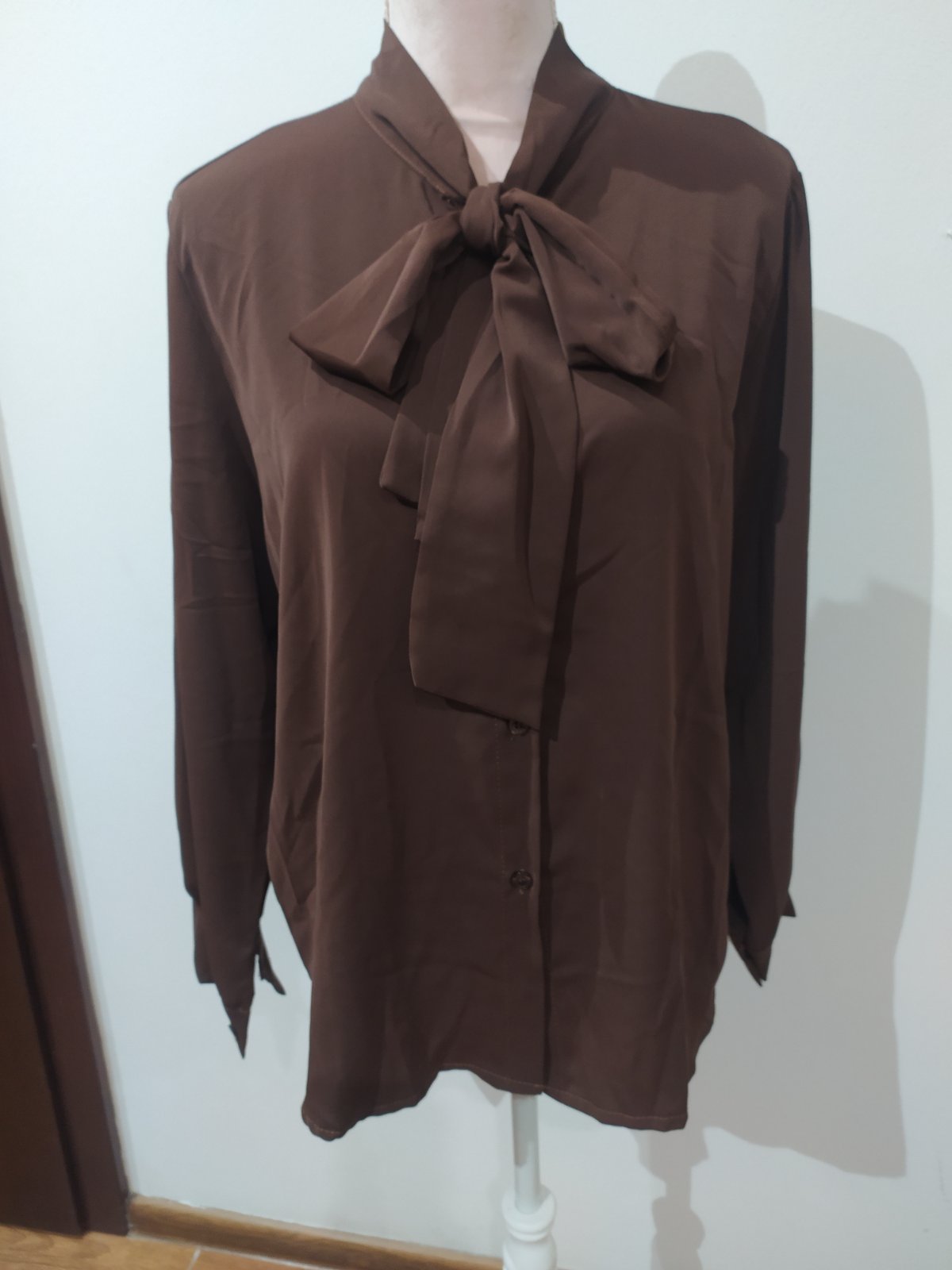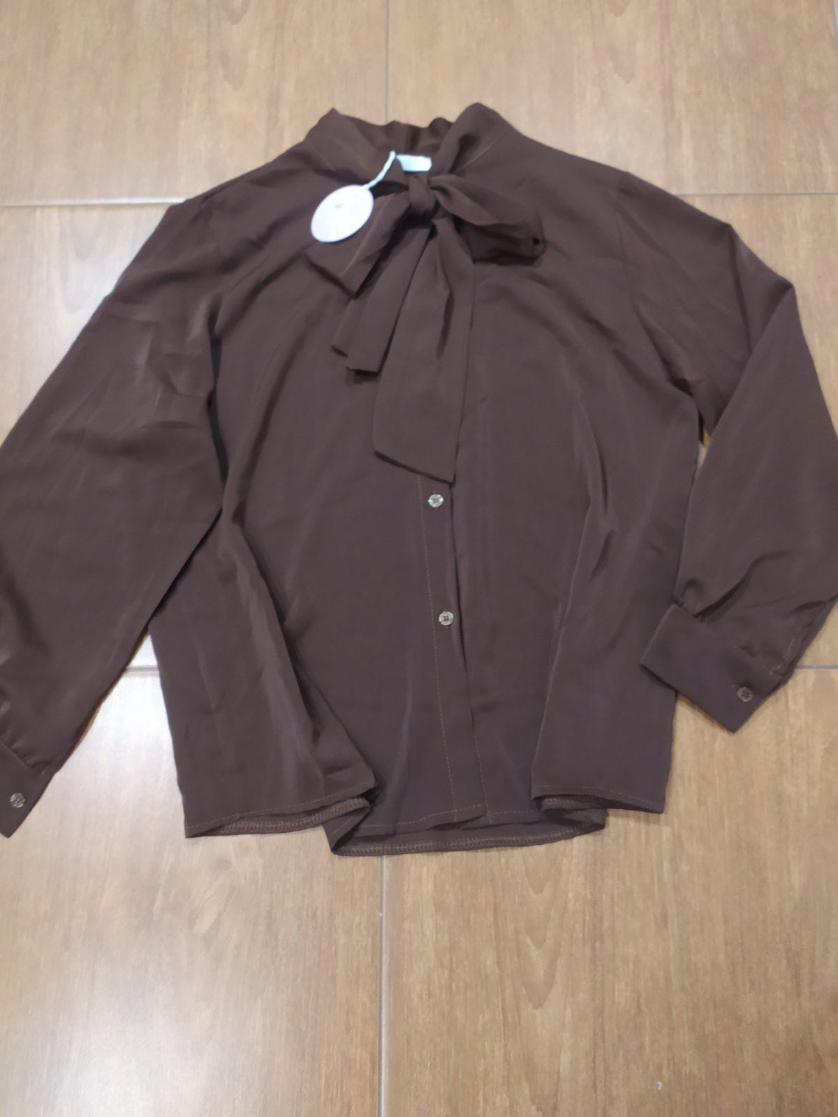 Krásna blúzka čokoládovej farby,doplnená mašľou.Vrl Uni vhodné pre veľ M/L