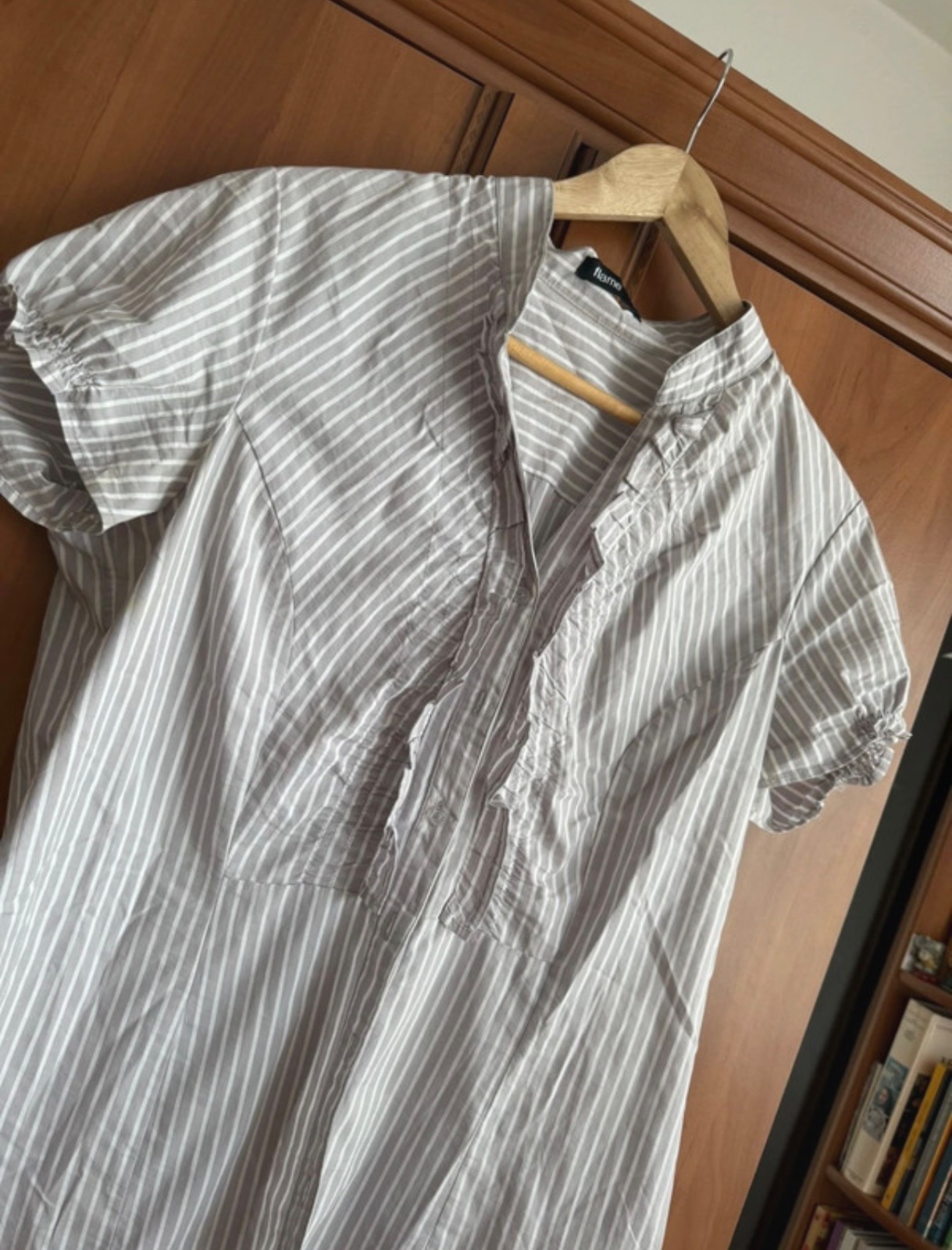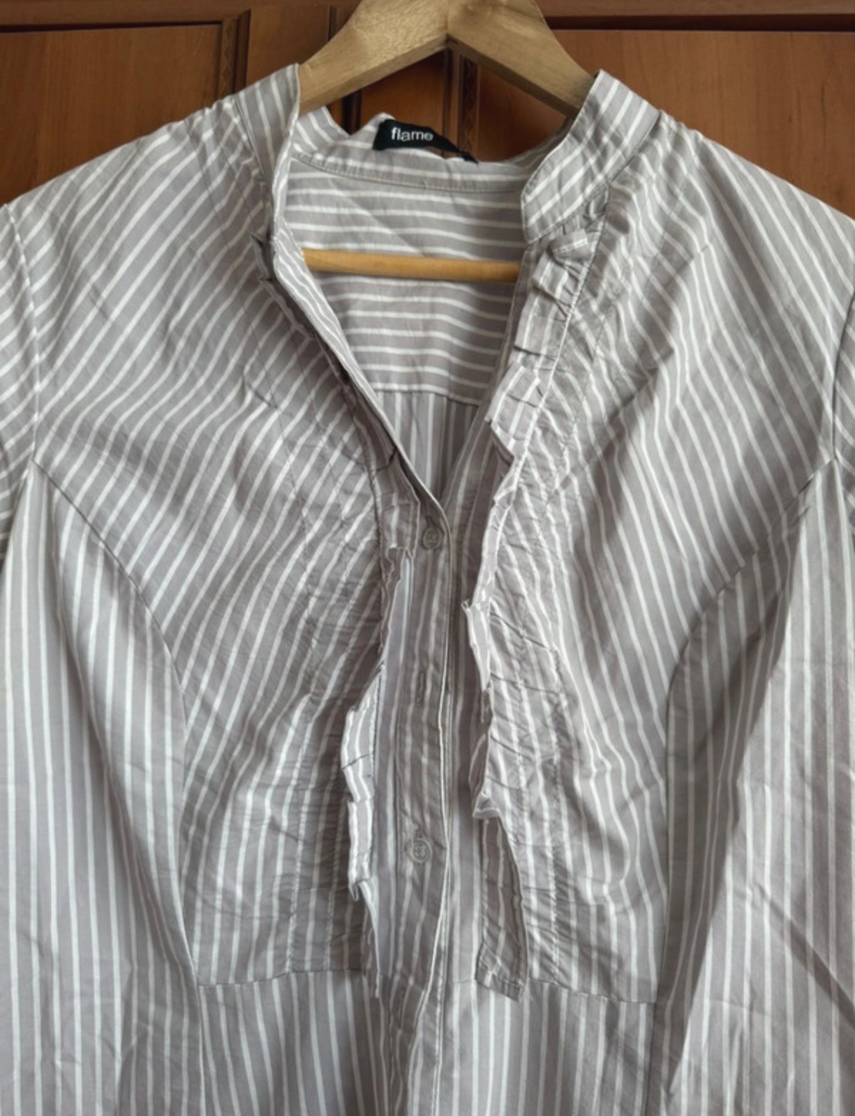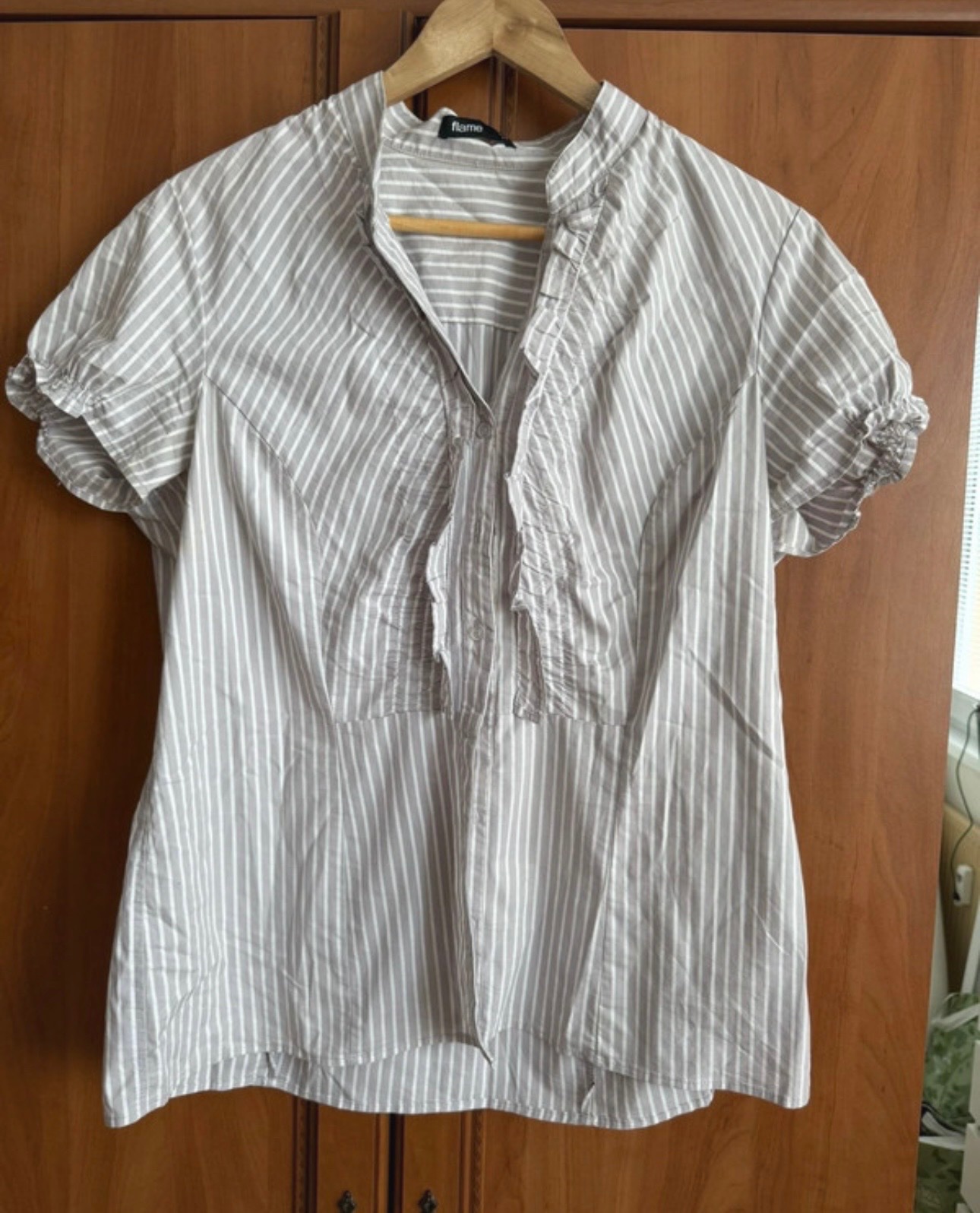Táto krásna pruhovaná košeľa je skvelým doplnkom do akéhokoľvek šatníka.💐Vyrobená z príjemného materiálu🫶, je ideálna pre letné dni či pracovné stretnutia.🪻 Košeľa je vo veľmi dobrom stave, nosená, ale bez výrazných známok opotrebenia.❤️
