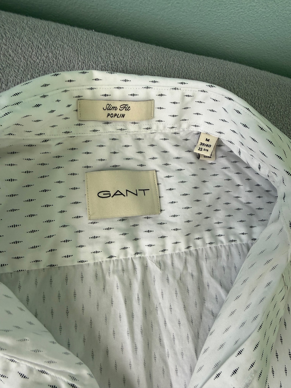 GANT krásna pánska košela Regular fit v 100% stave...nakolko manžel ju mal len raz Super farebna kombinácia na leto Vo velkosti M Dlžka prednej časti je 74cm a zadnej je 77cm, dlžka rukáva od krku...
