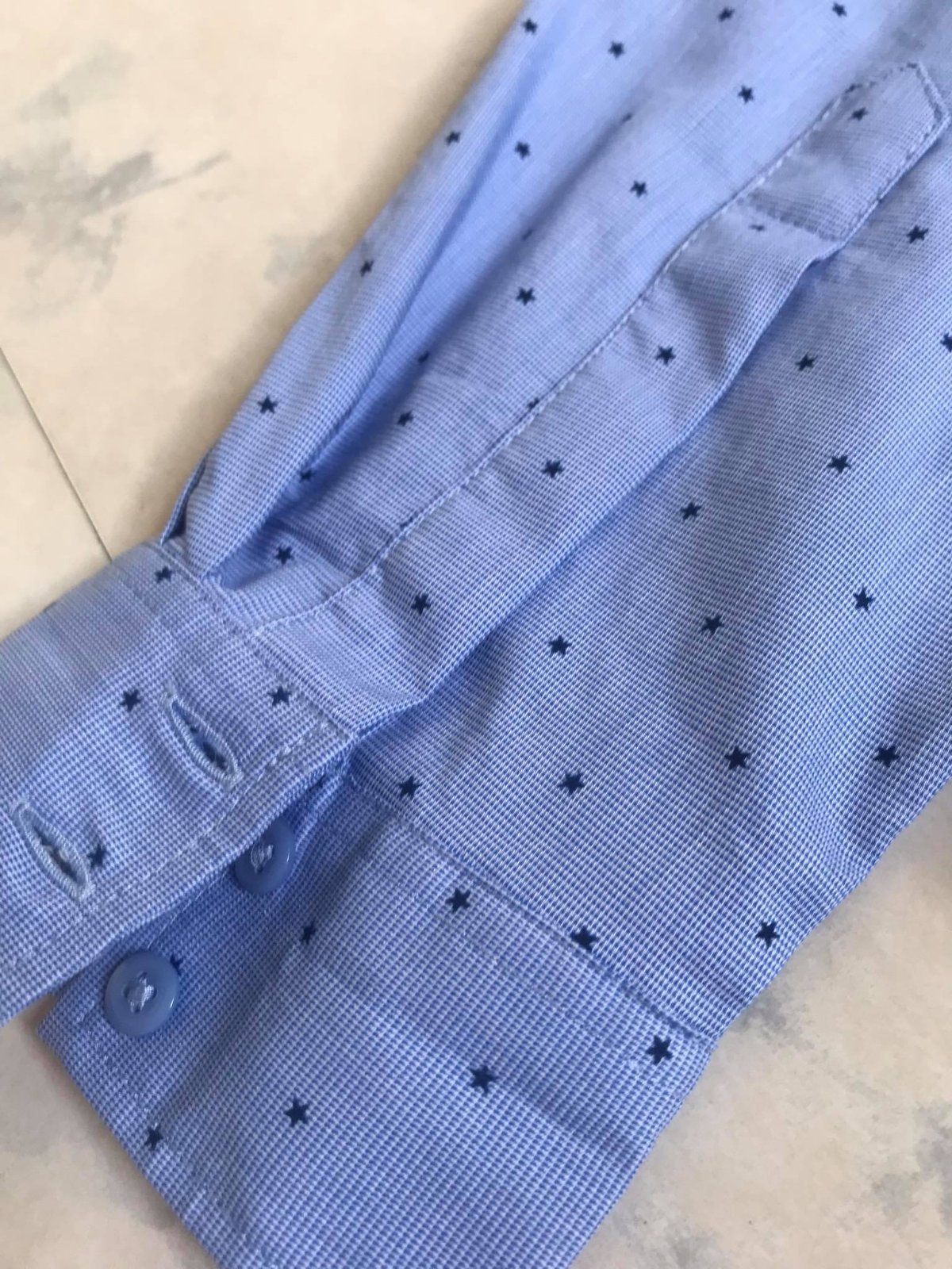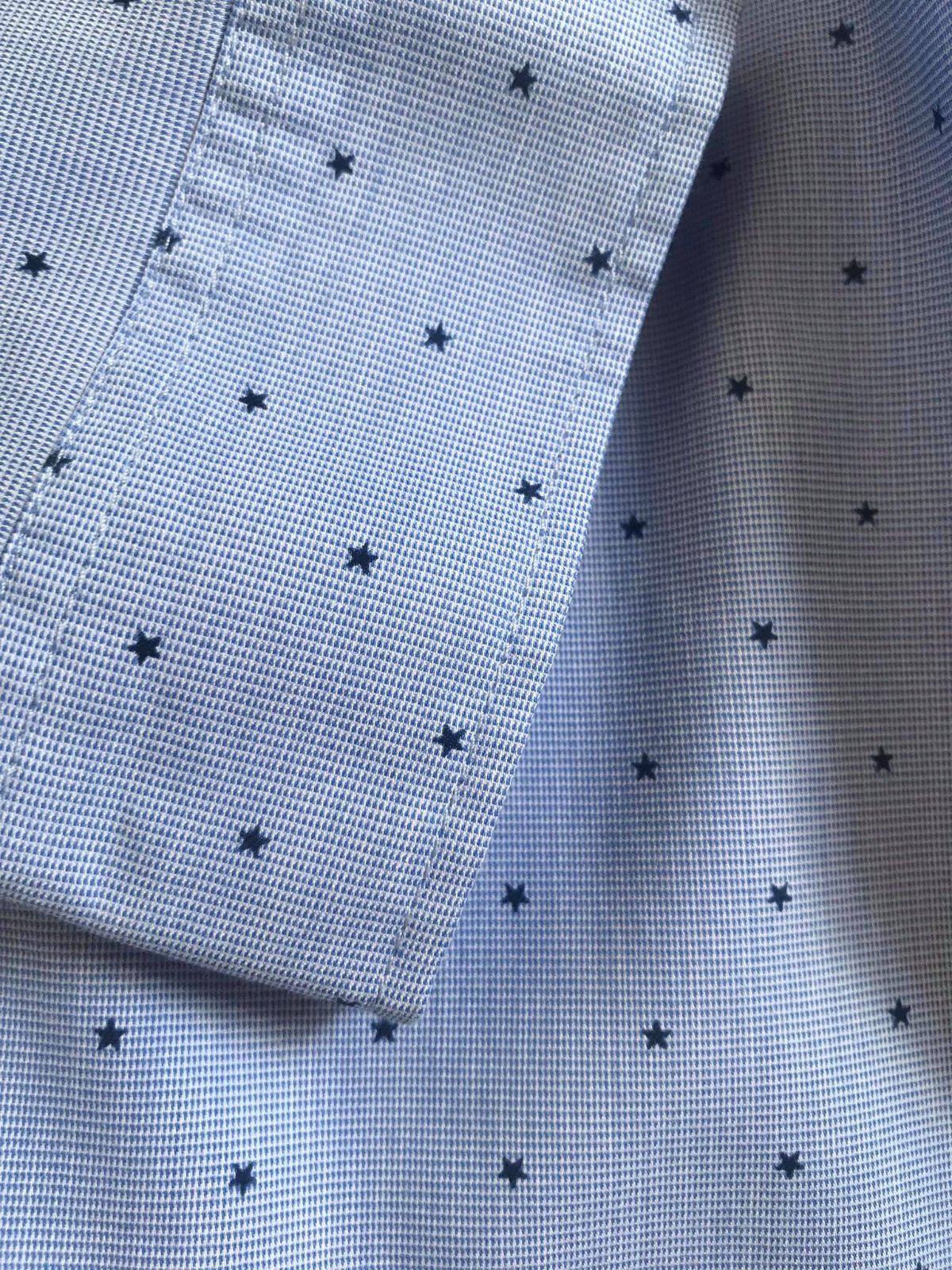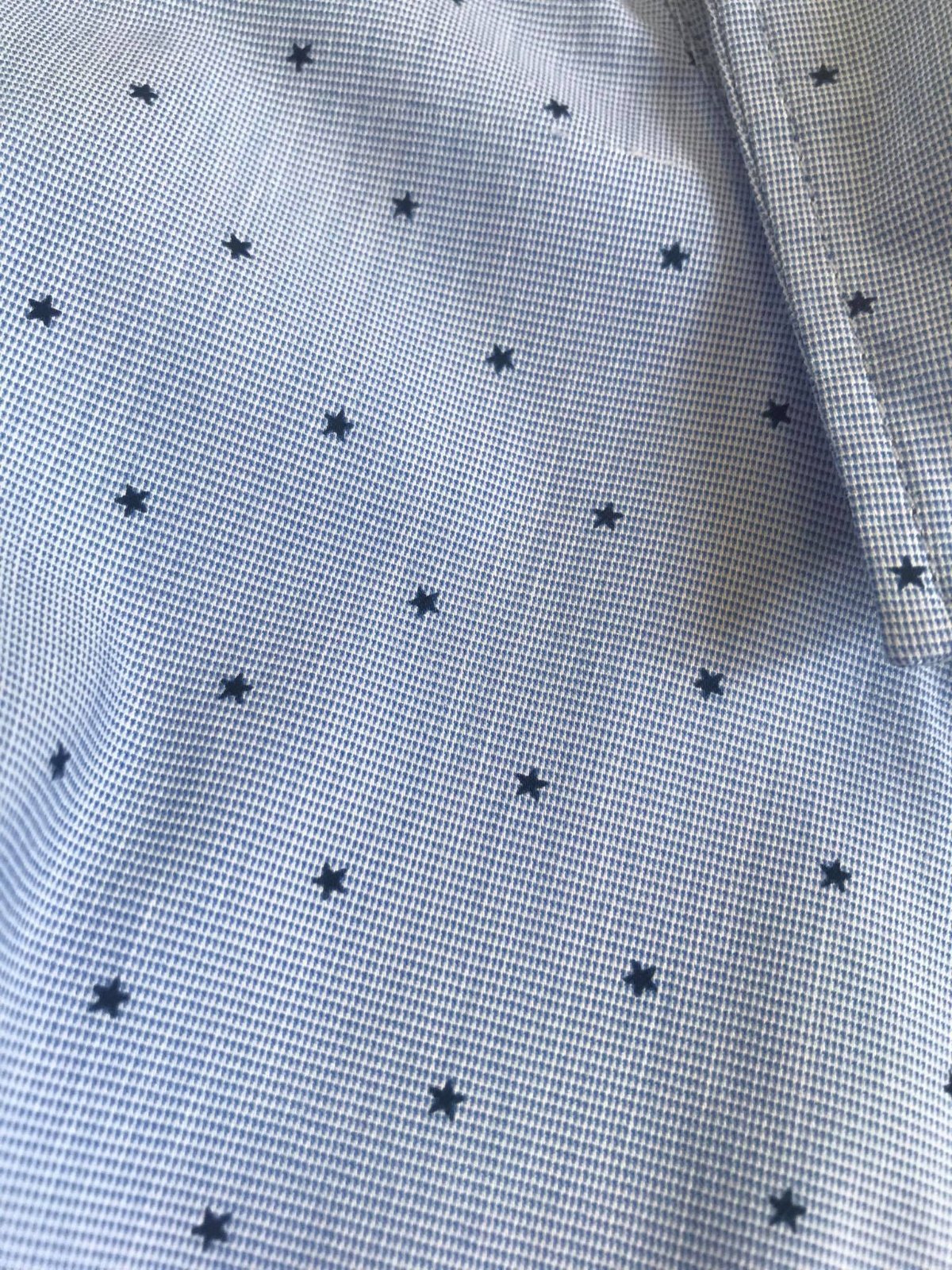 krásna,raz opraná blúzka s drobnými hviezdičkami,s jemným strečom,vzadu záševky,krásne vytvarovaná,dlžka celkom v strede ( je jemne strihaná do oblúka ) = 72 cm,dlžka od pazuchy dole = 39 cm, šírka meraná pod pazuchou = 65 x 2 cm,ramená = 13,5 cm,rukáv = 63 cm