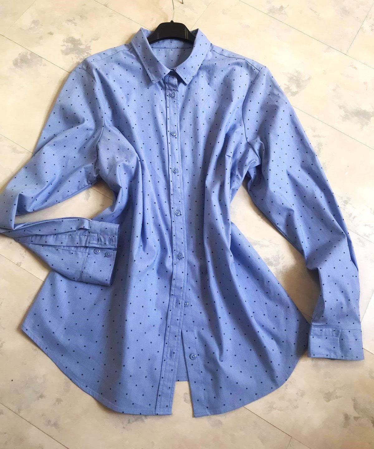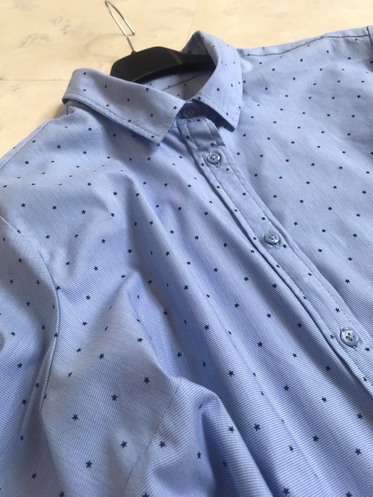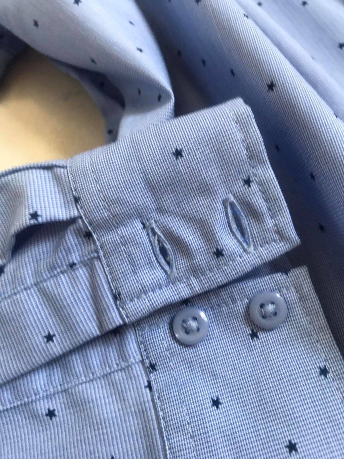 krásna,raz opraná blúzka s drobnými hviezdičkami,s jemným strečom,vzadu záševky,krásne vytvarovaná,dlžka celkom v strede ( je jemne strihaná do oblúka ) = 72 cm,dlžka od pazuchy dole = 39 cm, šírka meraná pod pazuchou = 65 x 2 cm,ramená = 13,5 cm,rukáv = 63 cm