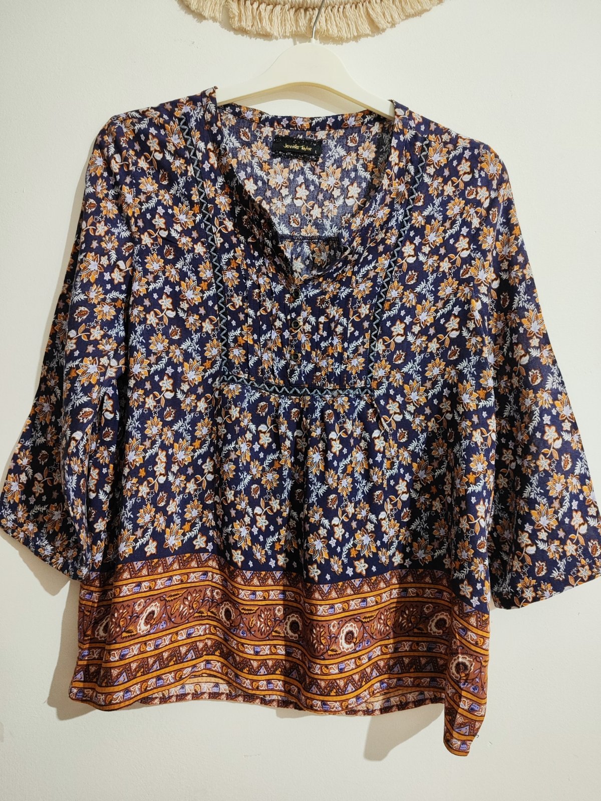 Nová bez visačky, kvalitný, nekrčivý jemný materiál.Šírka pod prsiami 130cm, dľžka predného dielu 63 cm, zadného 73 cm.Rukávy po lakte.